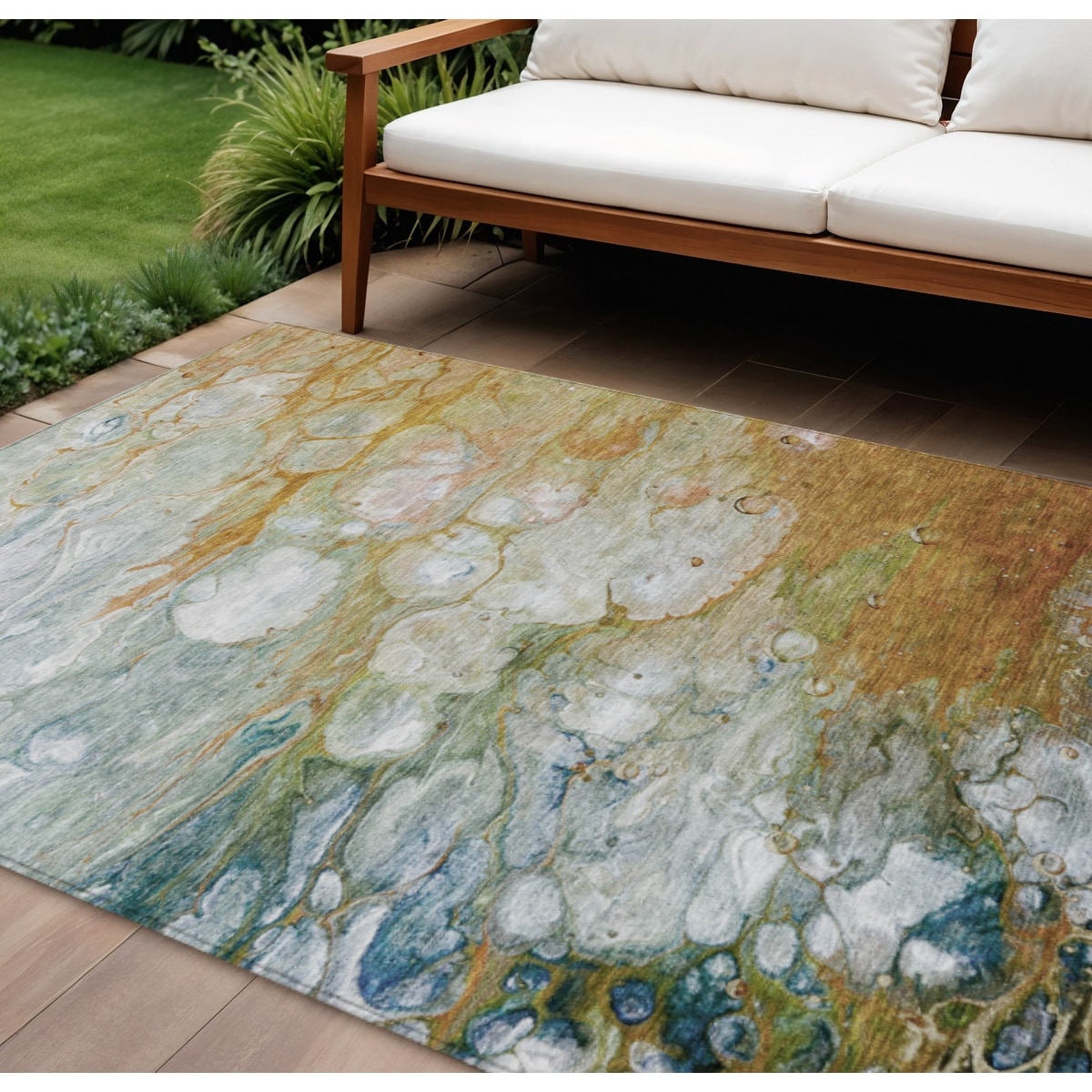 8' X 10' Tan Copper And Terra Cotta Abstract Washable Indoor Outdoor Area Rug - 9' x 12'