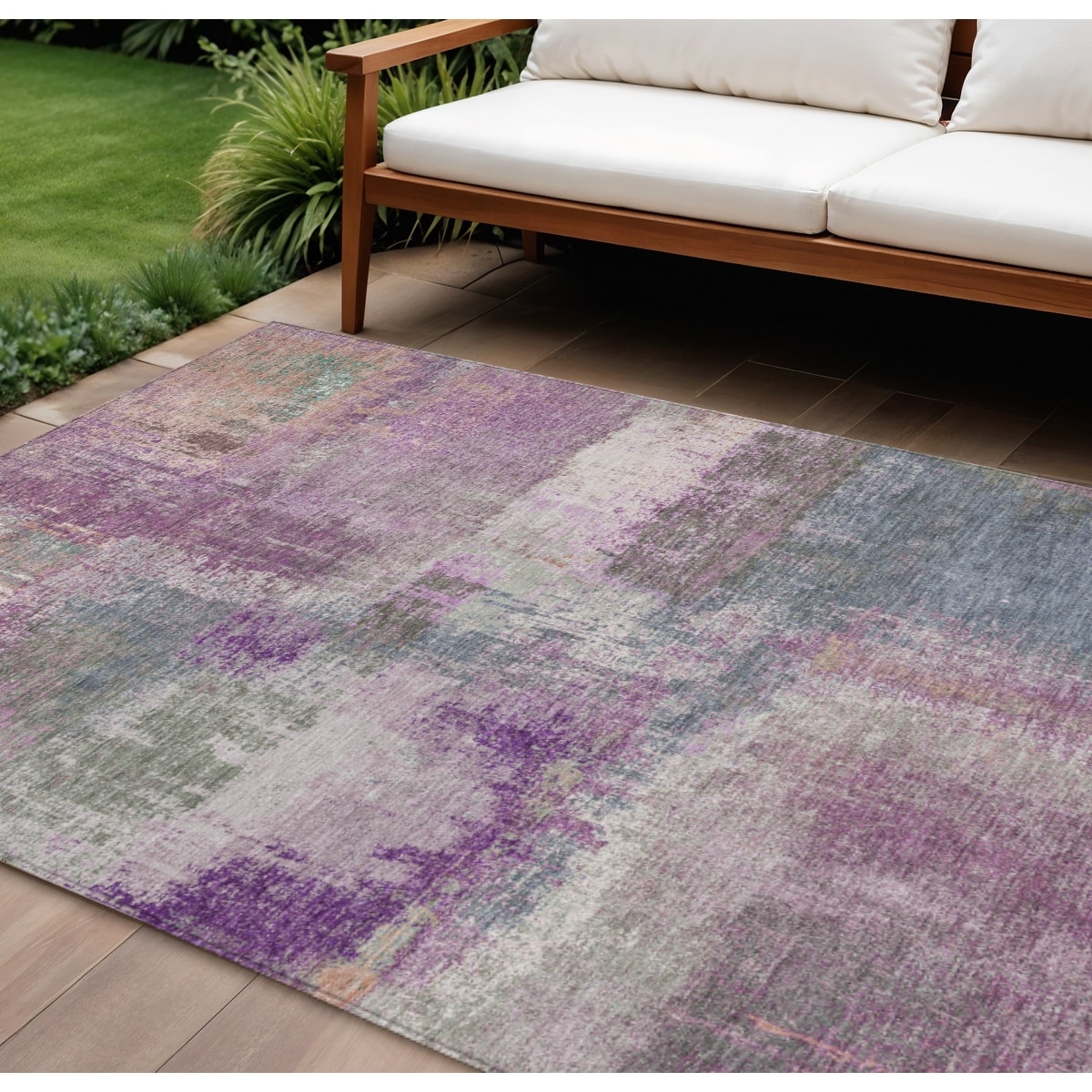8' X 10' Lavender And Purple Abstract Washable Indoor Outdoor Area Rug - 9' x 12'