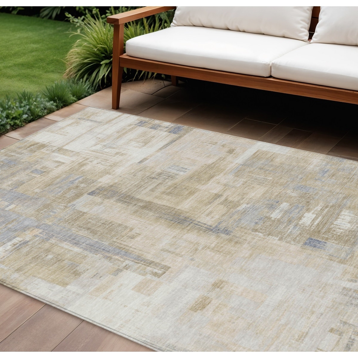 8' X 10' Ivory And Beige Abstract Washable Indoor Outdoor Area Rug - 9' x 12'
