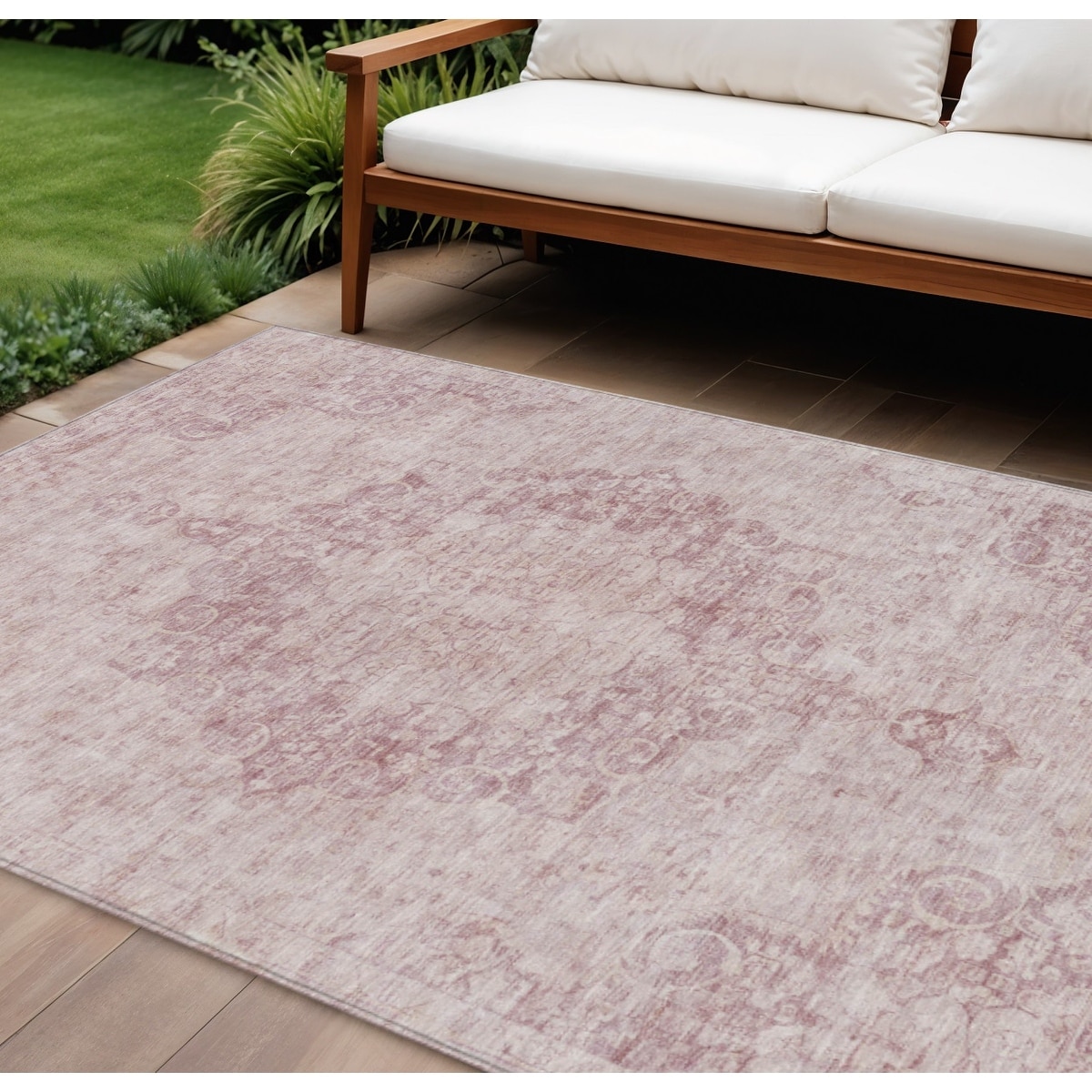 9' X 12' Pink Floral Medallion Washable Indoor Outdoor Area Rug - 9' x 12'