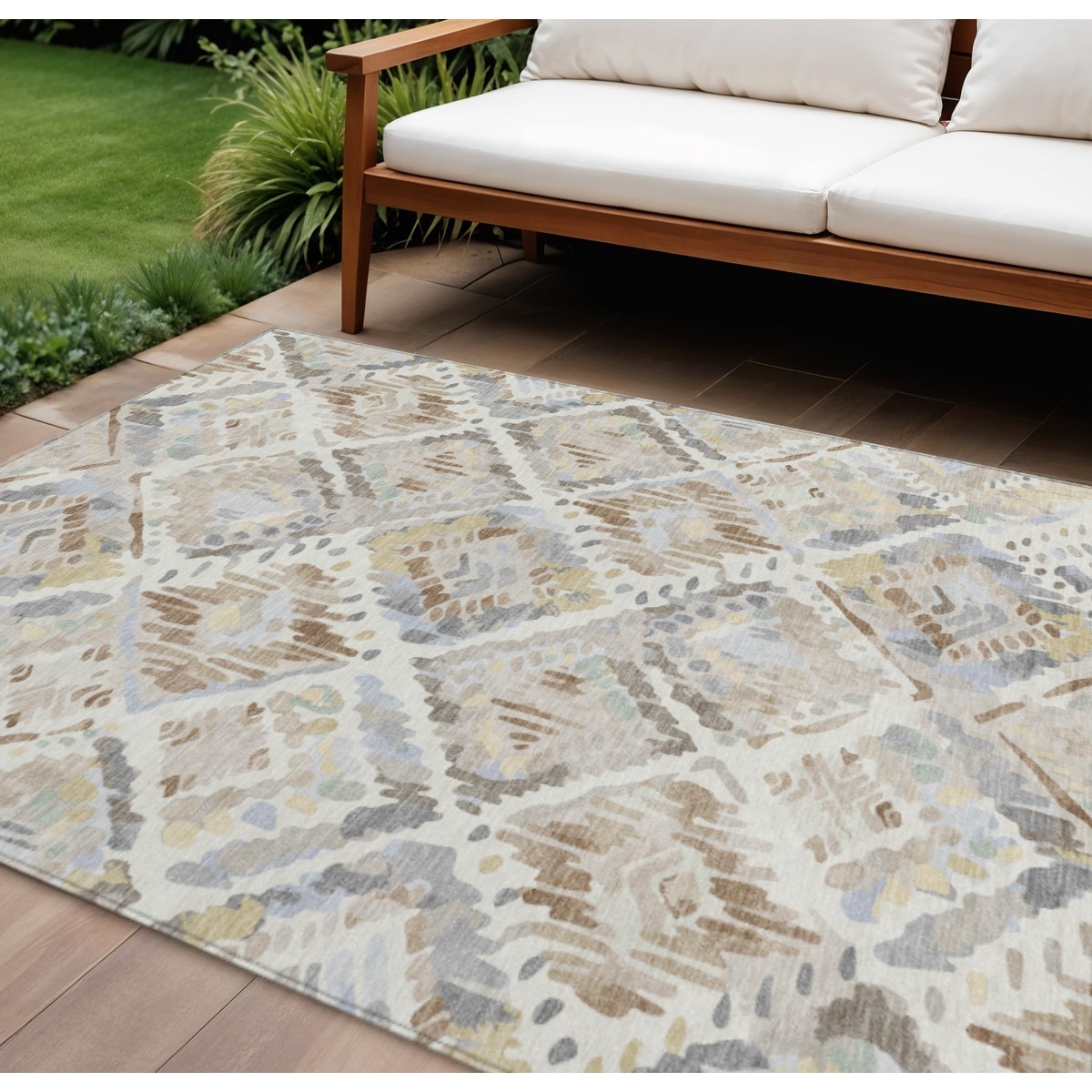 5' X 8' Beige Geometric Washable Indoor Outdoor Area Rug - 5' x 8'