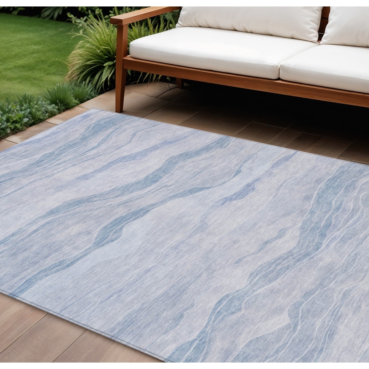 9' X 12' Sky Blue Striped Washable Indoor Outdoor Area Rug - 9' x 12'