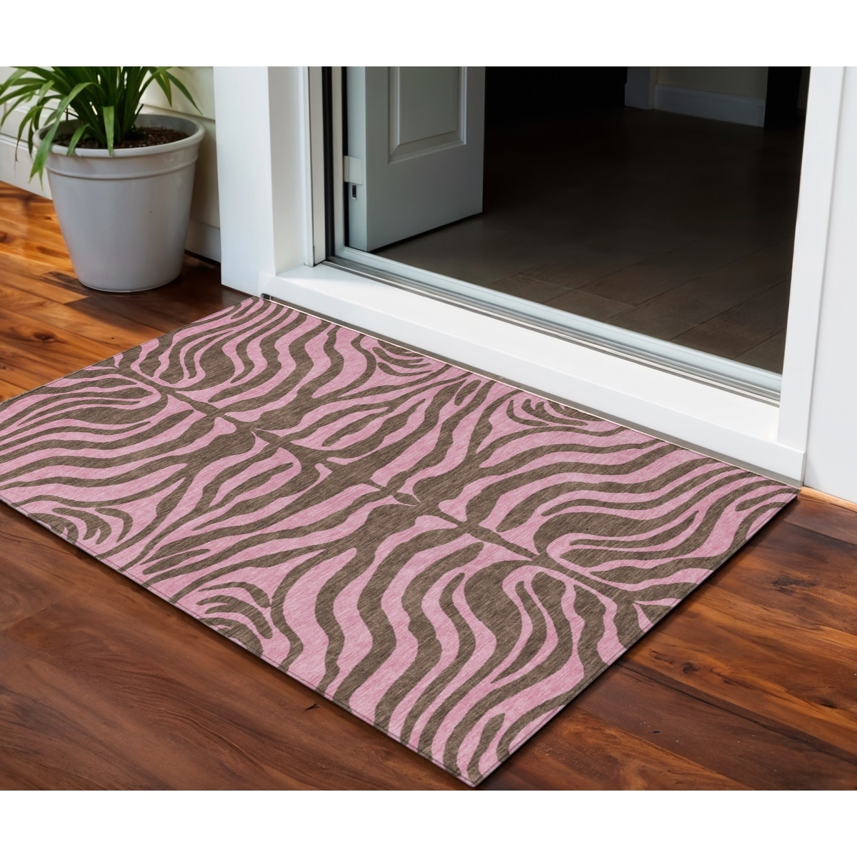 3' X 5' Brown And Pink Animal Print Washable Indoor Outdoor Area Rug - 3' x 6'