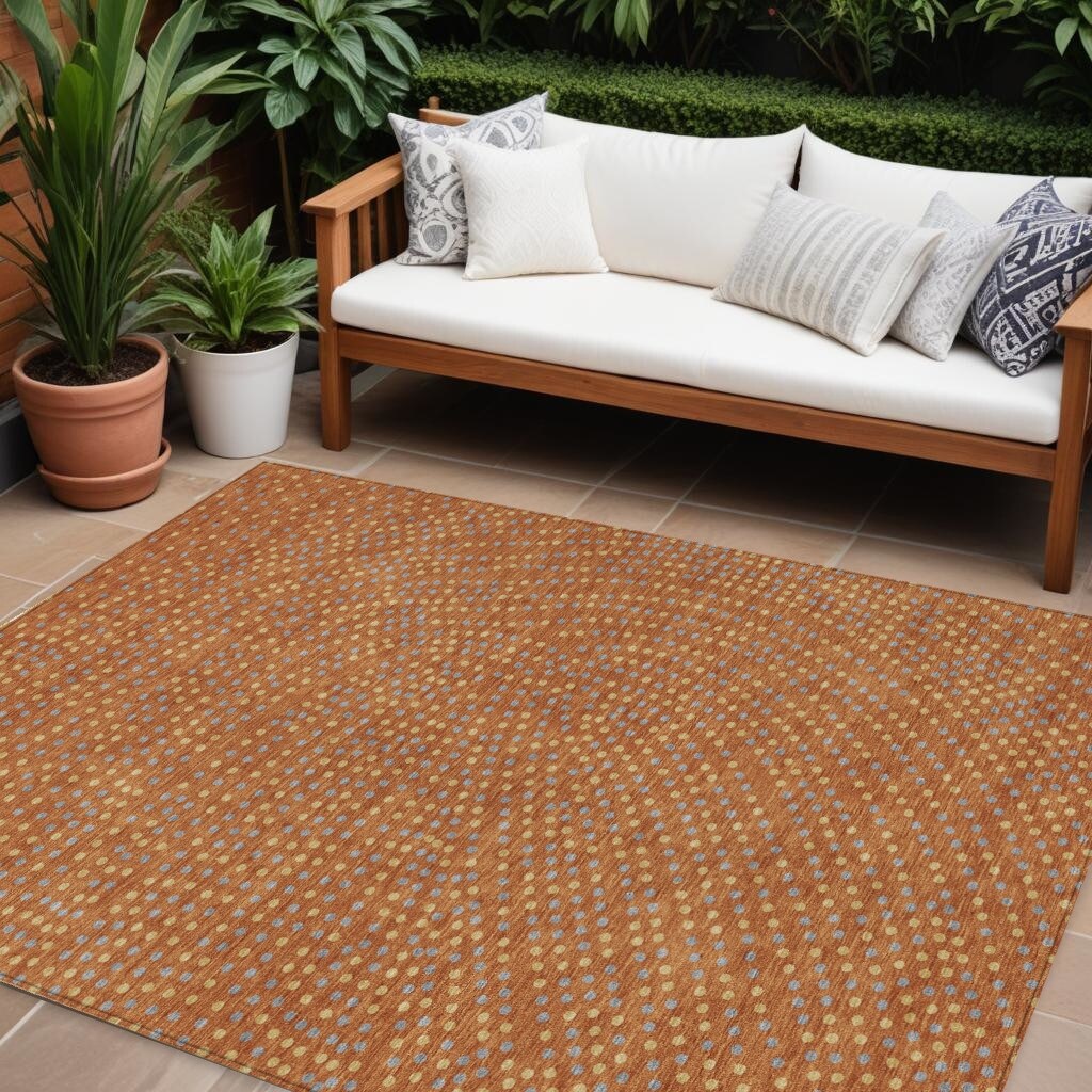 8' X 10' Brown Gray And Gold Polka Dot Washable Indoor Outdoor Area Rug - 9' x 12'