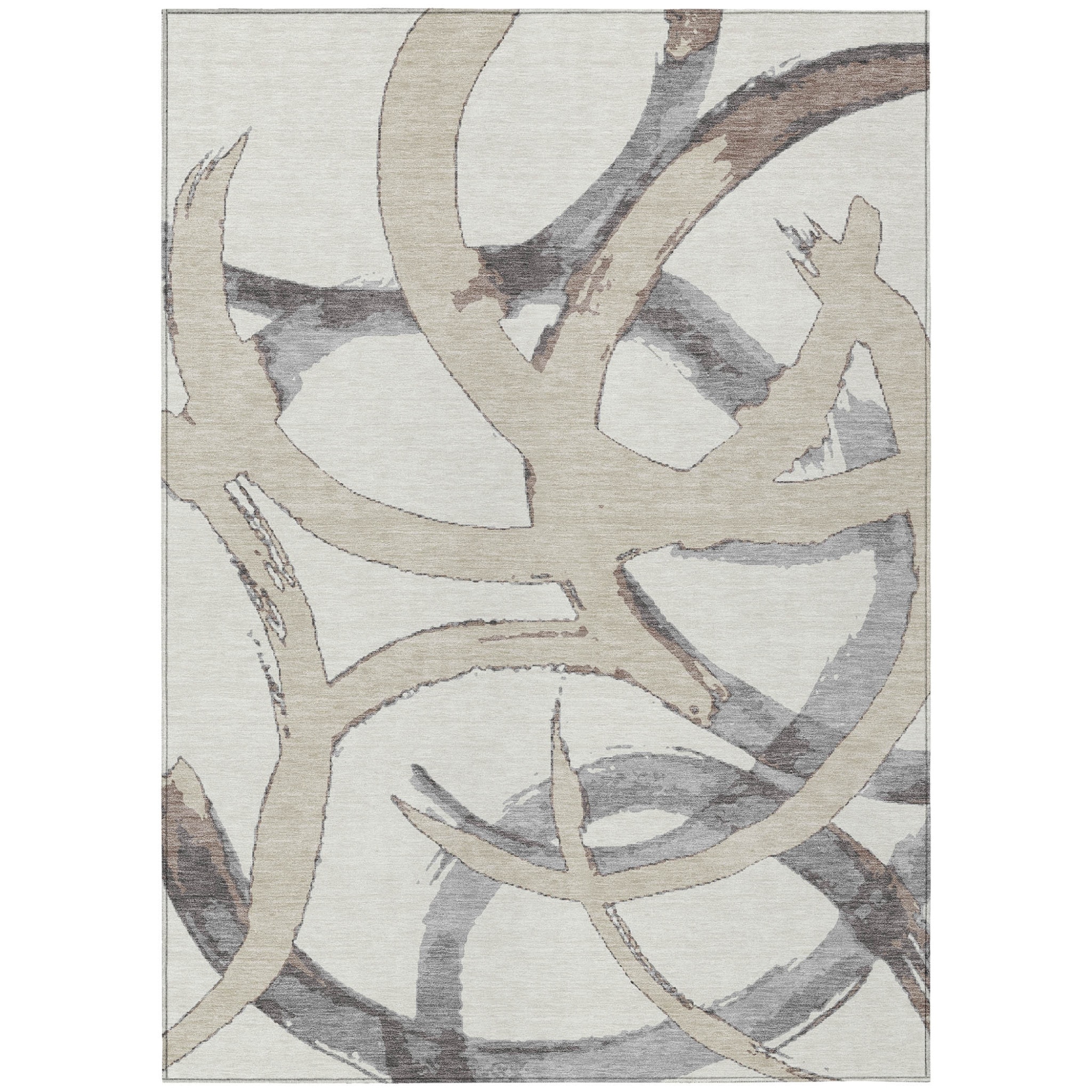 3' X 5' Ivory Gray And Beige Abstract Washable Indoor Outdoor Area Rug - 3' x 6'