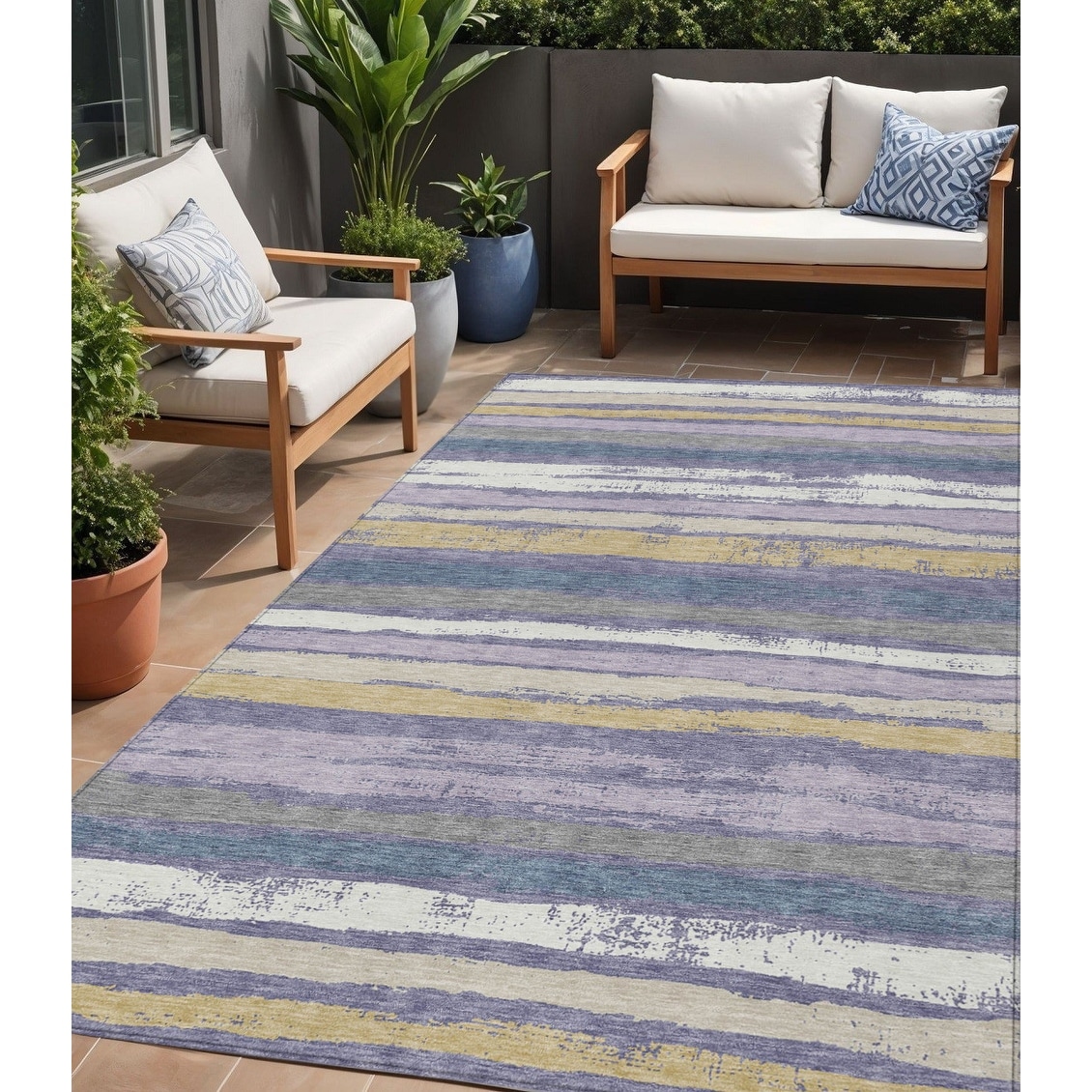 Machine Washable Indoor/ Outdoor Modern Stripes Chantille Rug