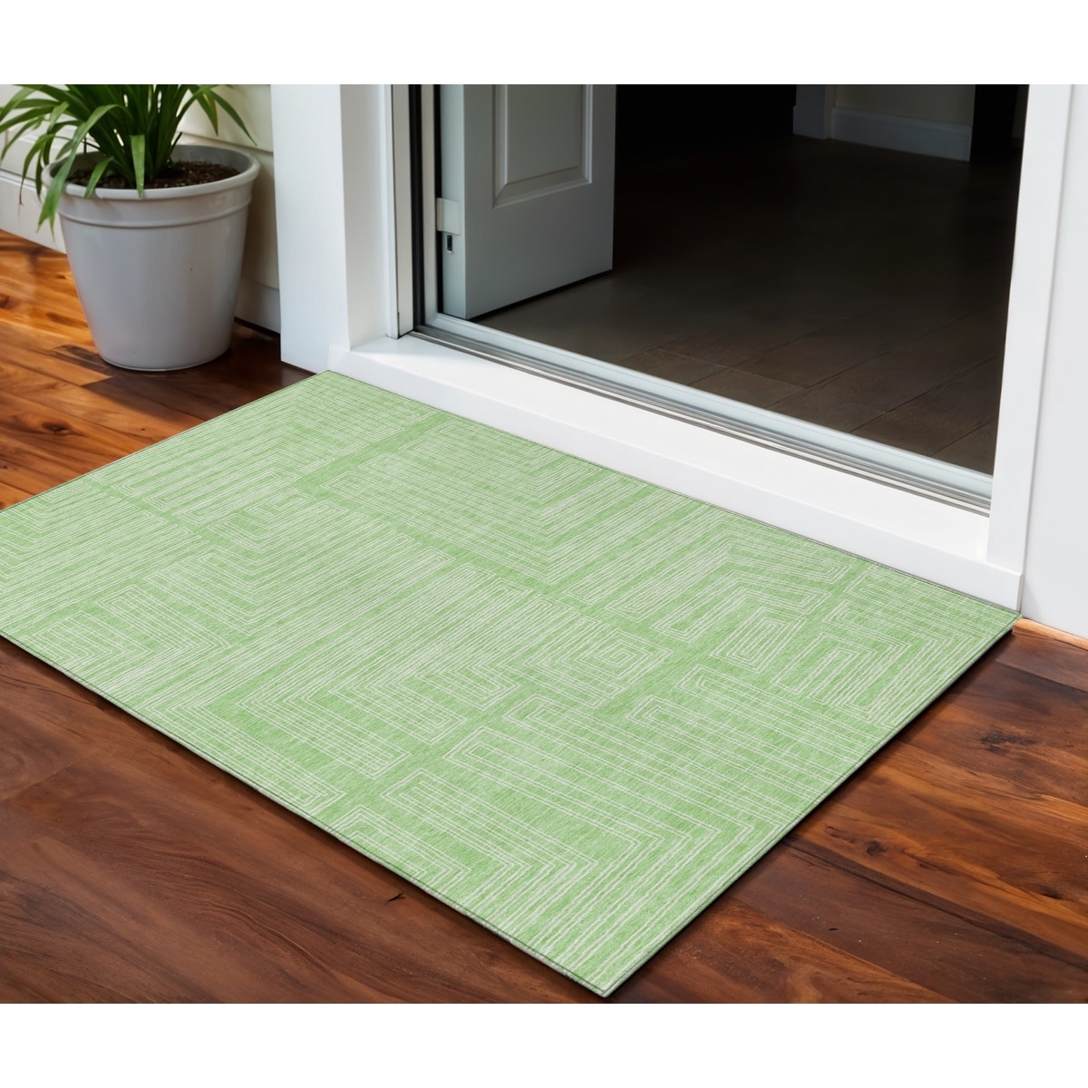 3' X 5' Mint Green And Ivory Geometric Washable Indoor Outdoor Area Rug - 3' x 6'