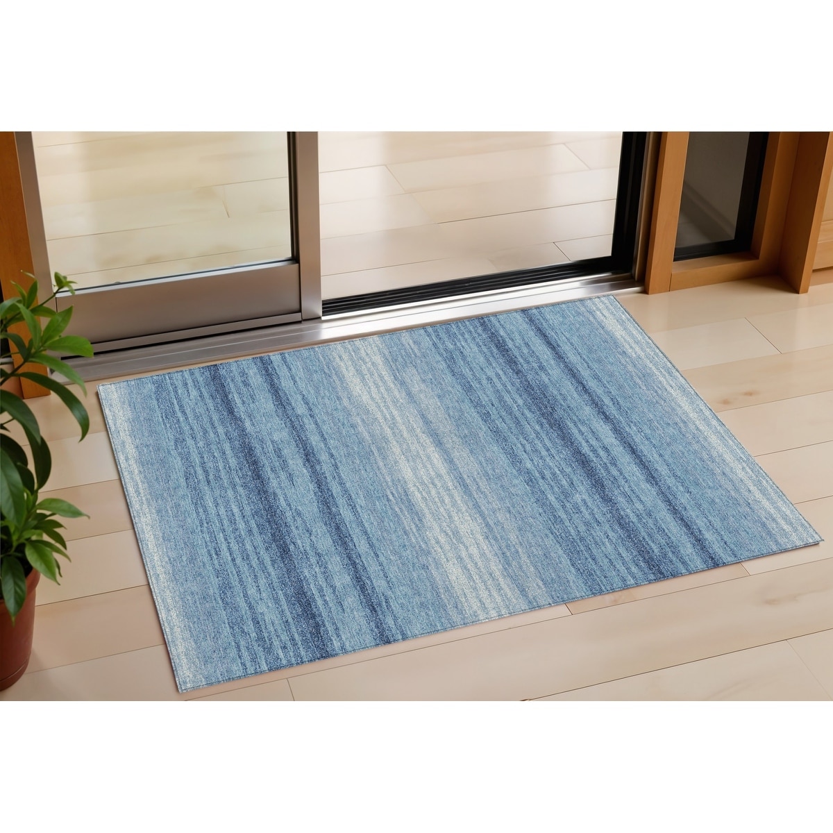 3' X 5' Blue And Ivory Abstract Washable Indoor Outdoor Area Rug - 3' x 6'