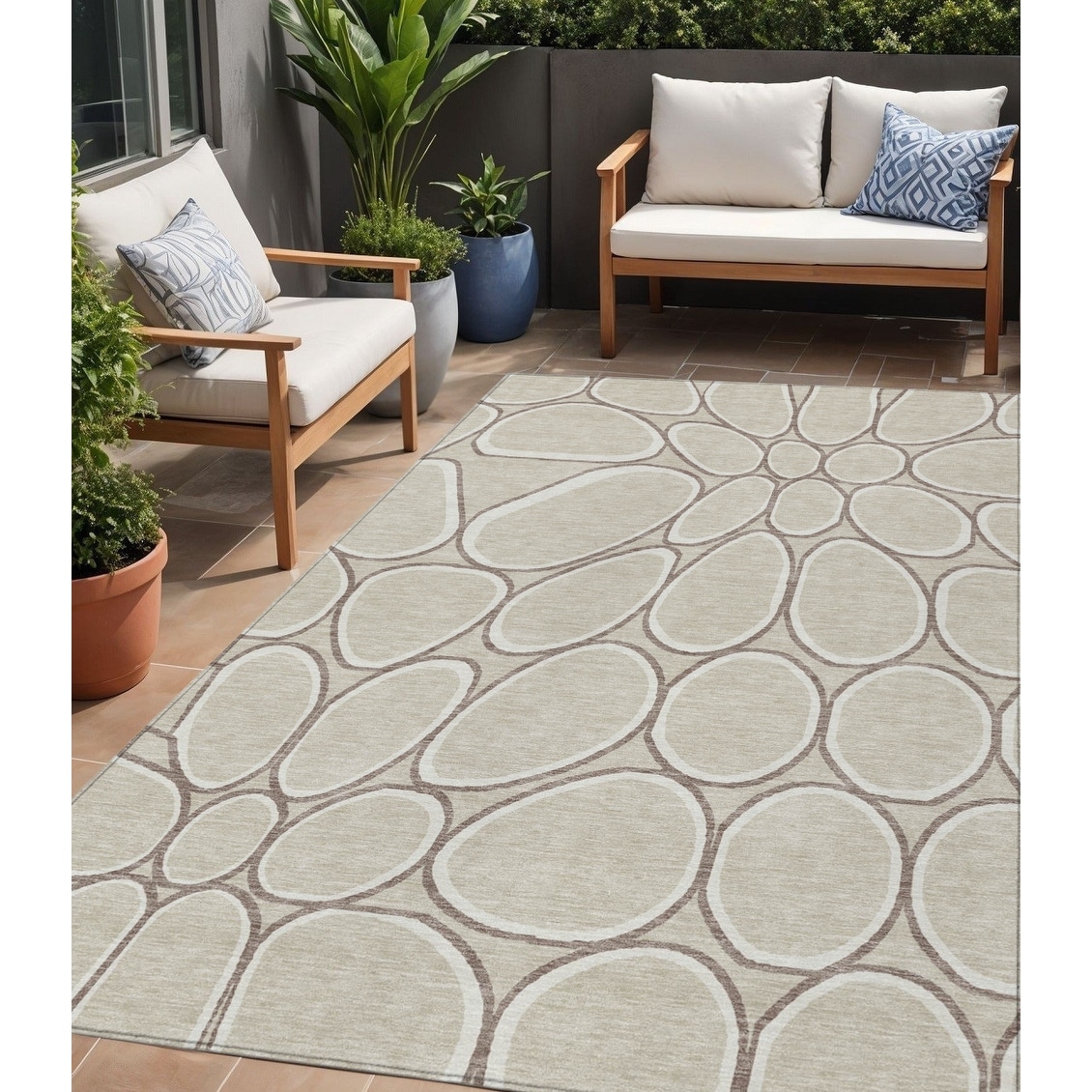 5' X 8' Beige And Brown Abstract Washable Indoor Outdoor Area Rug - 5' x 8'