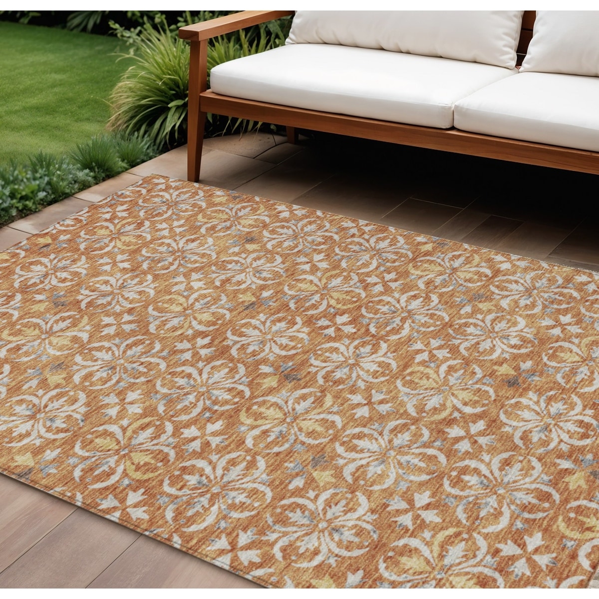 5' X 8' Copper And Beige Ombre Washable Indoor Outdoor Area Rug - 5' x 8'