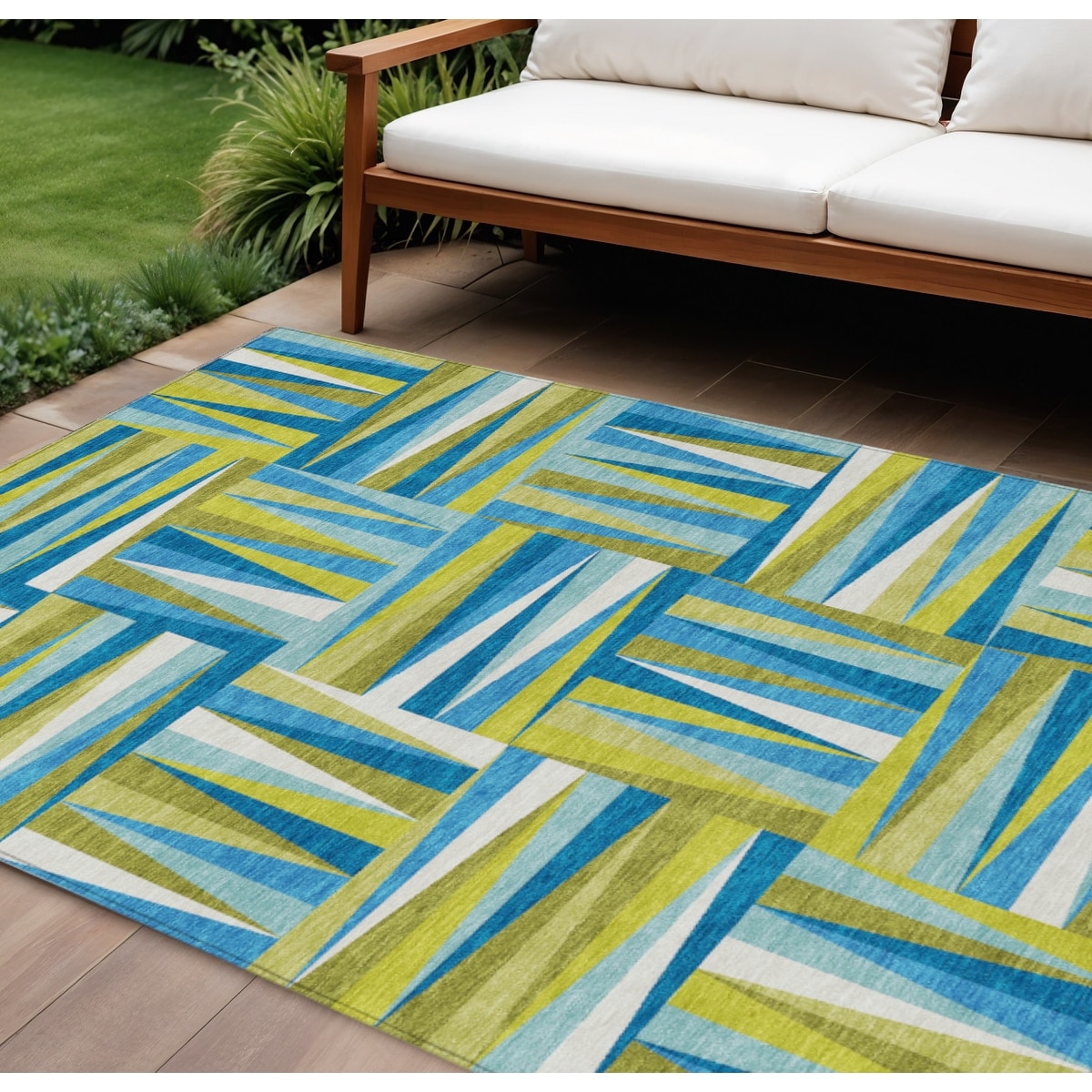 8' X 10' Green And Light Green Geometric Washable Indoor Outdoor Area Rug - 9' x 12'