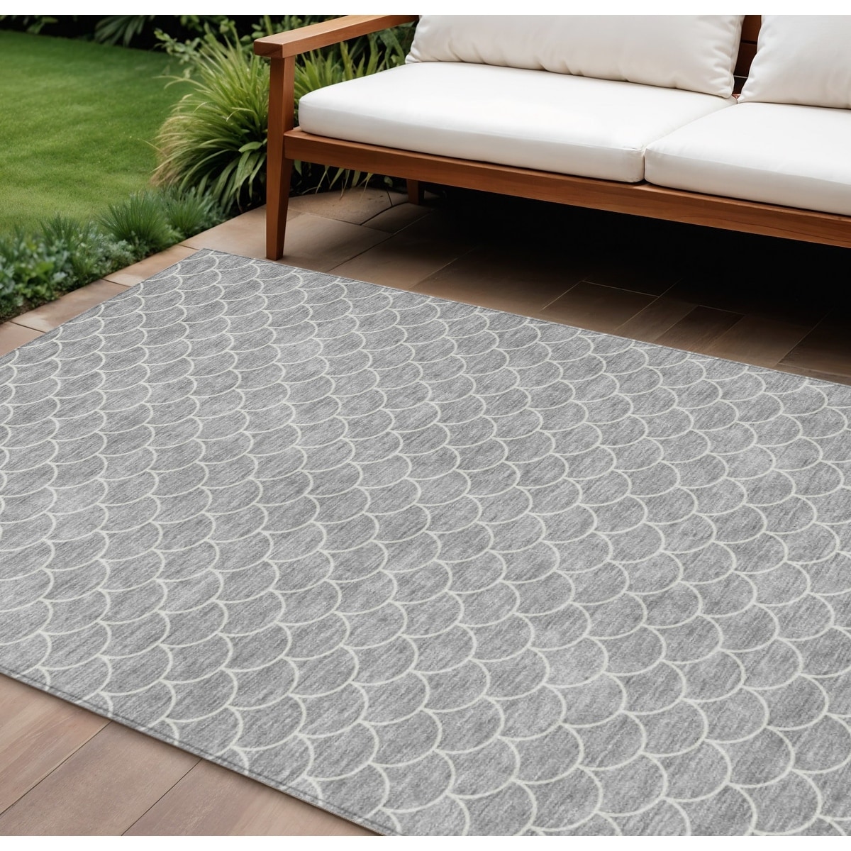 10' X 14' Gray And Ivory Geometric Washable Indoor Outdoor Area Rug - 9' x 12'