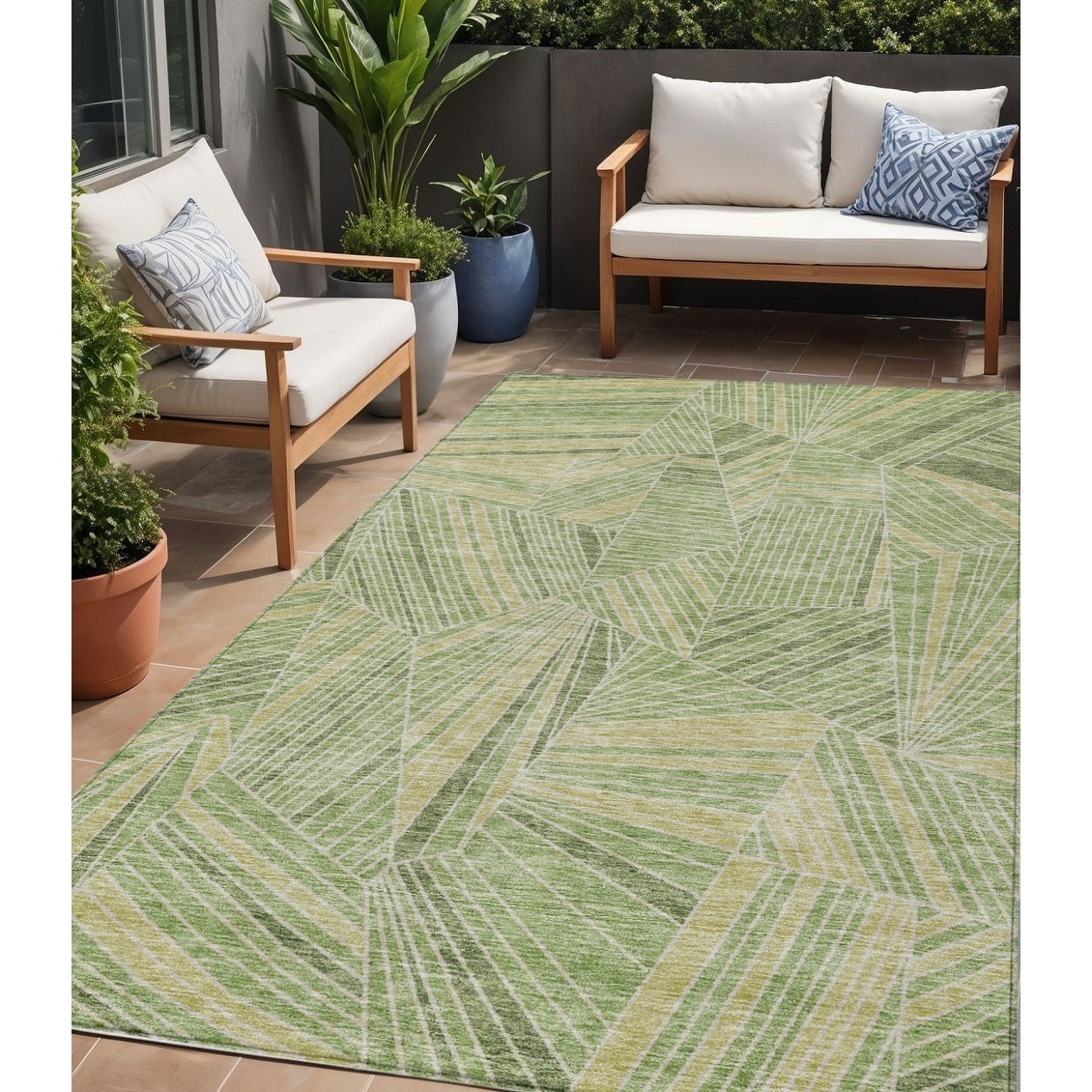 5' X 8' Green And Olive Green Geometric Washable Indoor Outdoor Area Rug - 5' x 8'