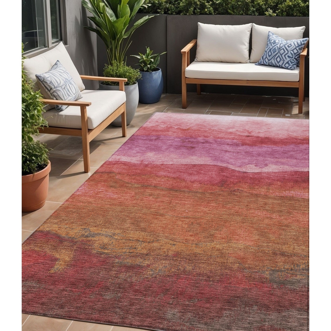 5' X 8' Blush Mauve And Rust Abstract Washable Indoor Outdoor Area Rug - 5' x 8'