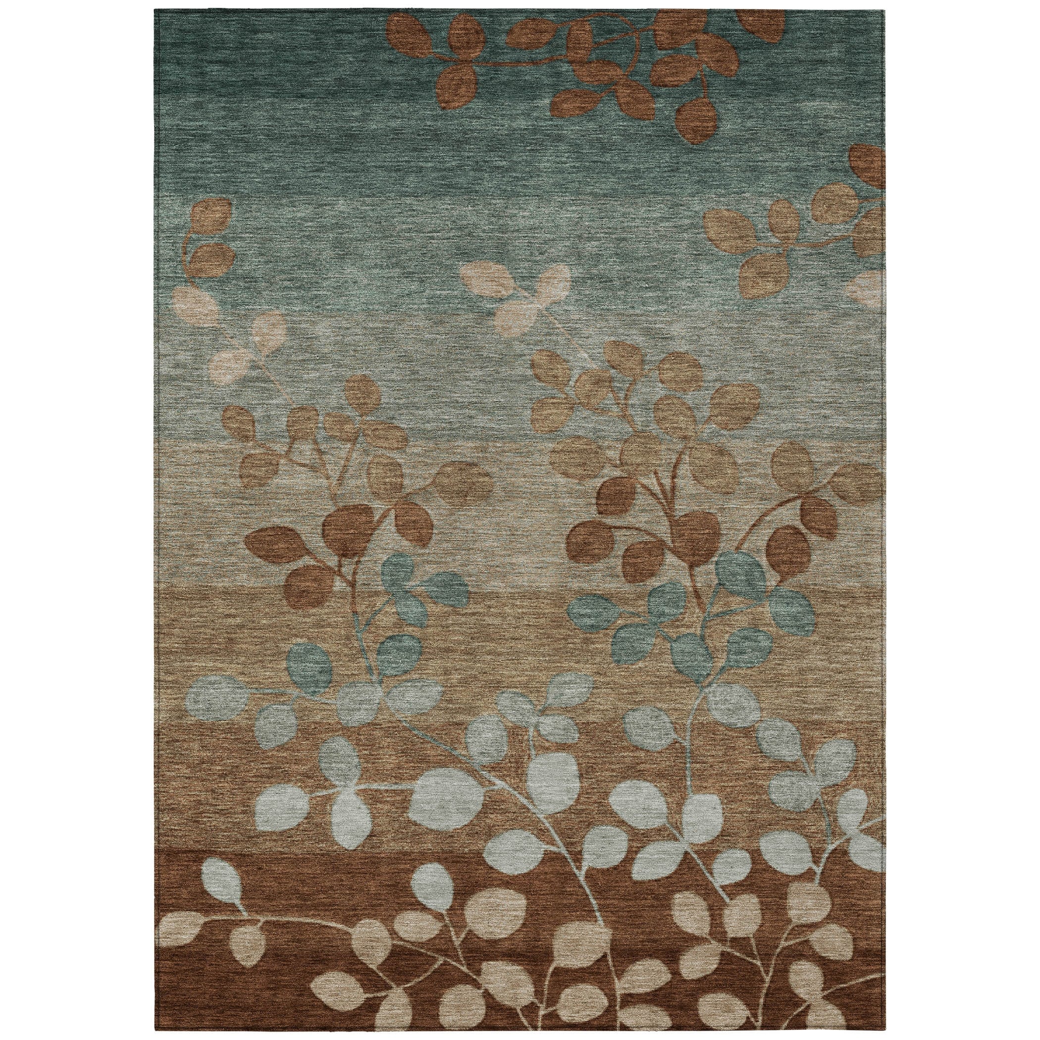 3' X 5' Brown And Teal Blue Floral Washable Indoor Outdoor Area Rug - 3' x 6'