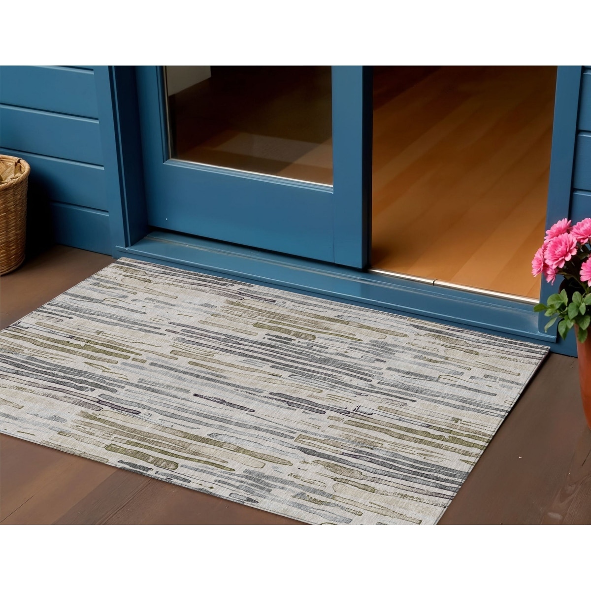 3' X 5' Beige And Gray Striped Washable Indoor Outdoor Area Rug - 3' x 6'