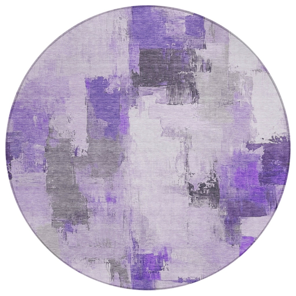 8' Lavender And Ivory Round Abstract Washable Indoor Outdoor Area Rug - 6' x 9'