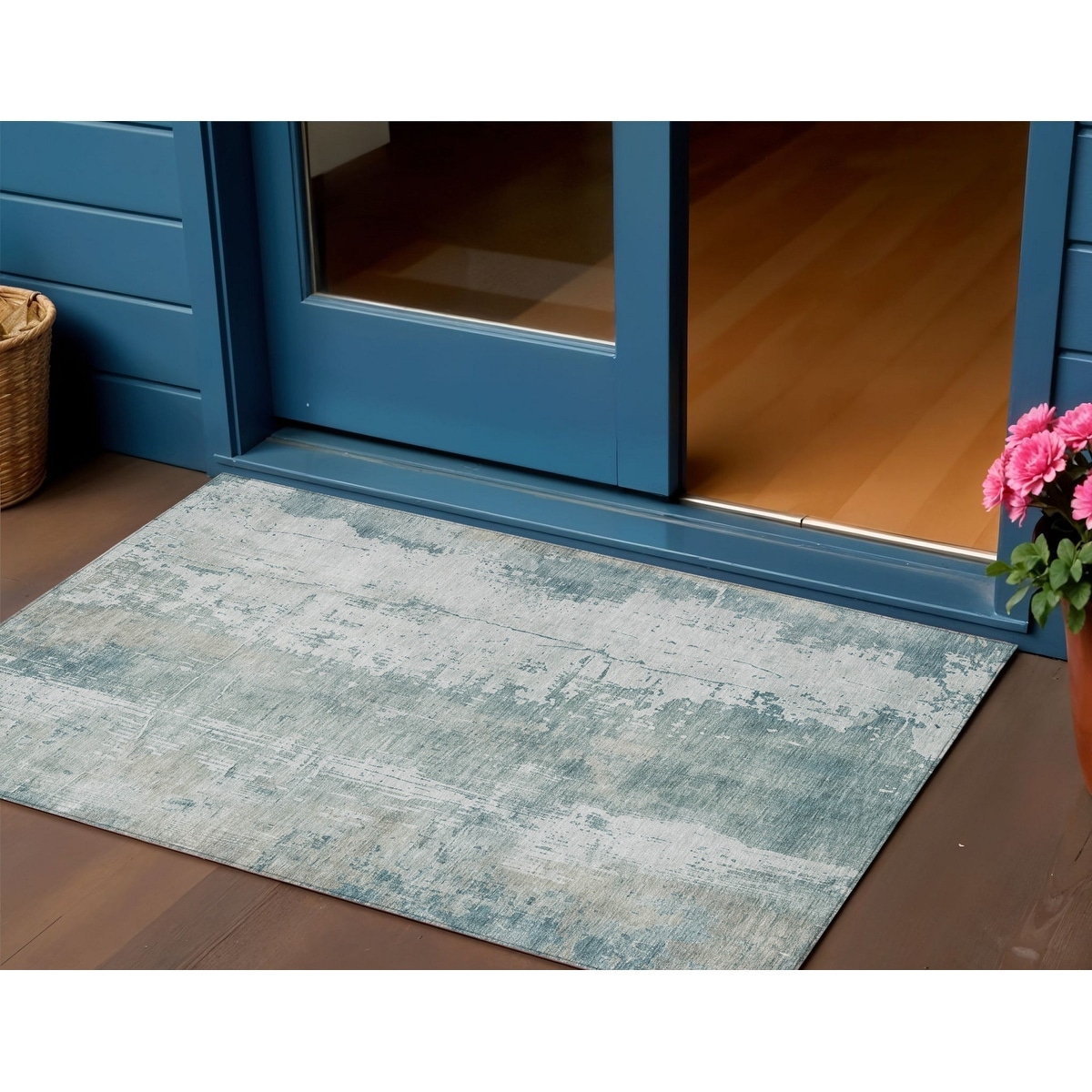 5' X 8' Teal Blue Charcoal And Gray Abstract Washable Indoor Outdoor Area Rug - 5' x 8'