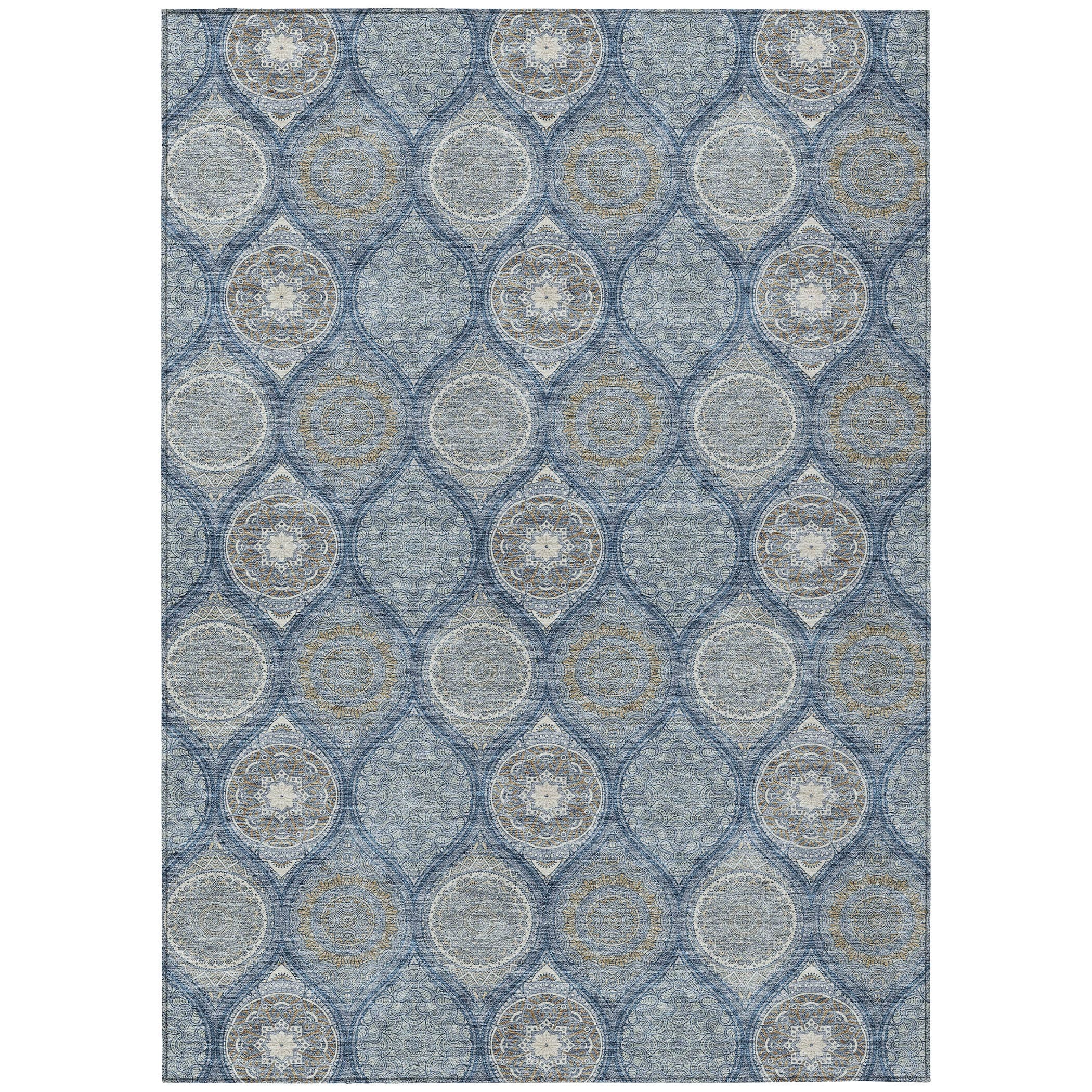 3' X 5' Blue And Ivory Abstract Washable Indoor Outdoor Area Rug - 3' x 6'