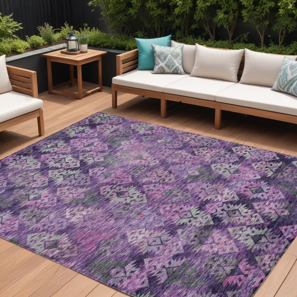 9' X 12' Eggplant Plum And Lavender Aztec Washable Indoor Outdoor Area Rug - 9' x 12'
