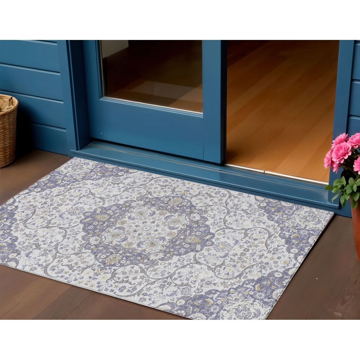 3' X 5' Lavender And Ivory Medallion Washable Indoor Outdoor Area Rug - 3' x 6'