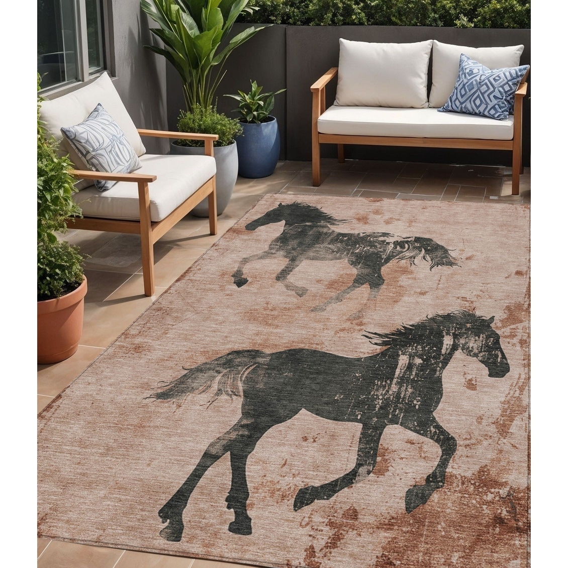 5' X 8' Rust And Charcoal Horse Washable Indoor Outdoor Area Rug - 5' x 8'