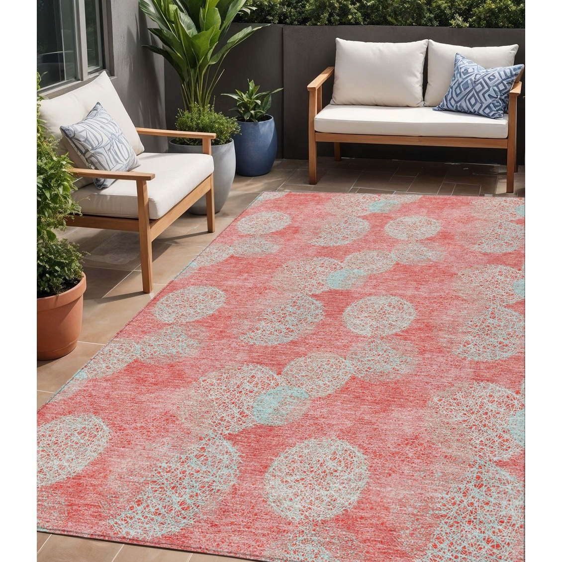 5' X 8' Salmon Ivory And Sky Blue Polka Dot Washable Indoor Outdoor Area Rug - 5' x 8'
