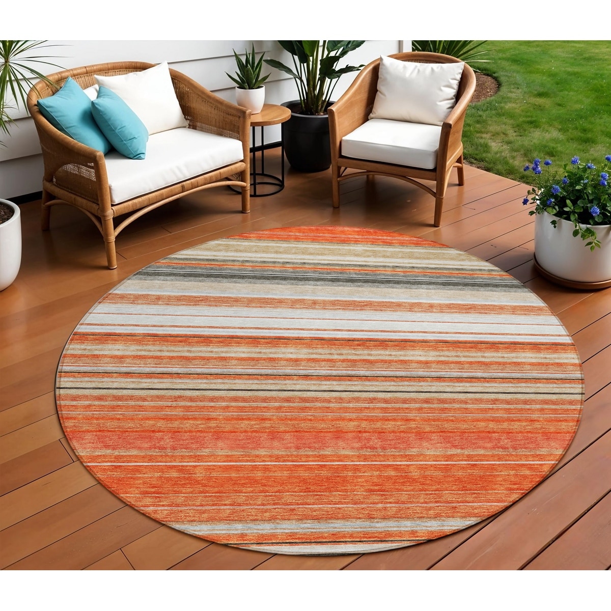 8' Coral Ivory And Gray Round Striped Washable Indoor Outdoor Area Rug - 6' x 9'