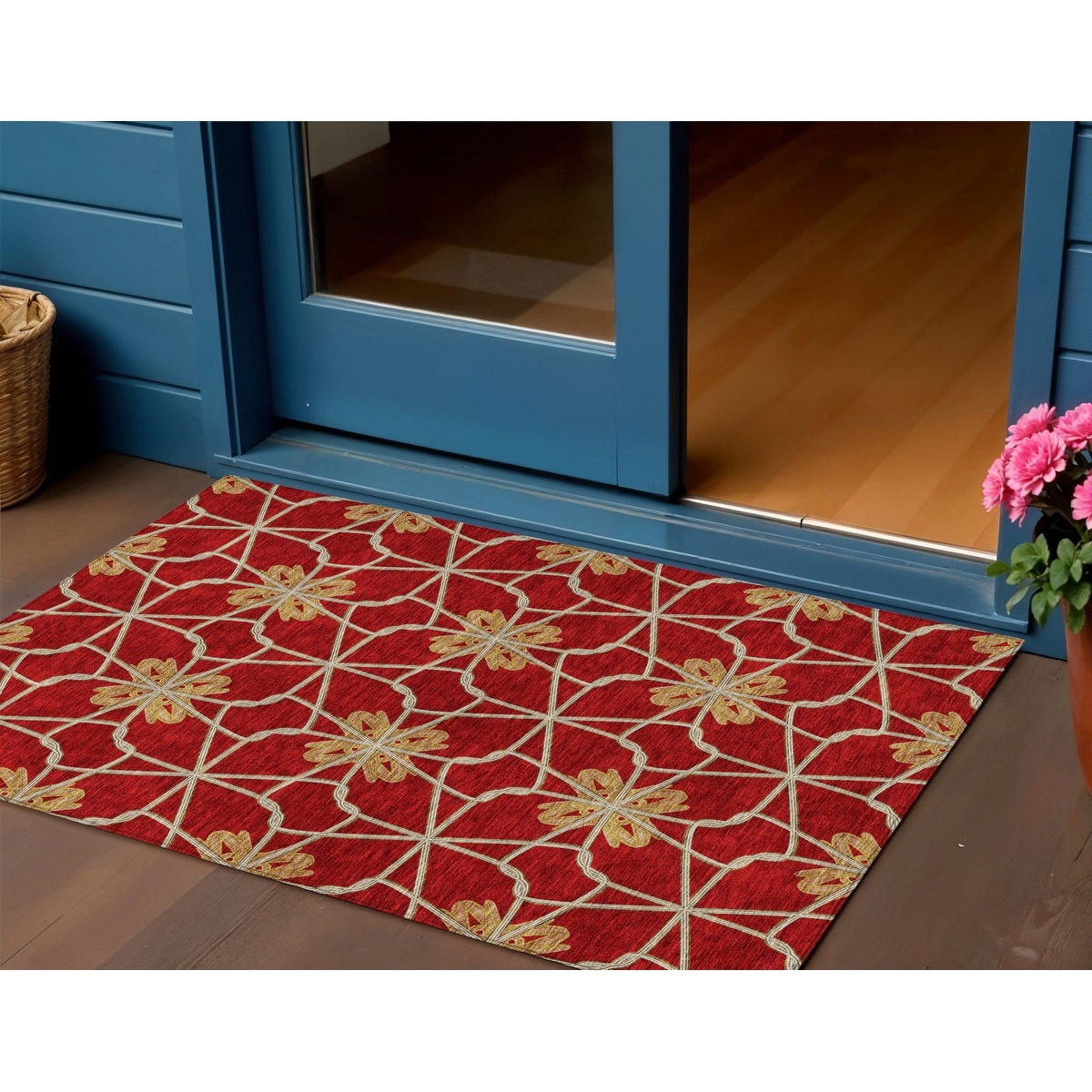 3' X 5' Orange And Gold Geometric Washable Indoor Outdoor Area Rug - 3' x 6'