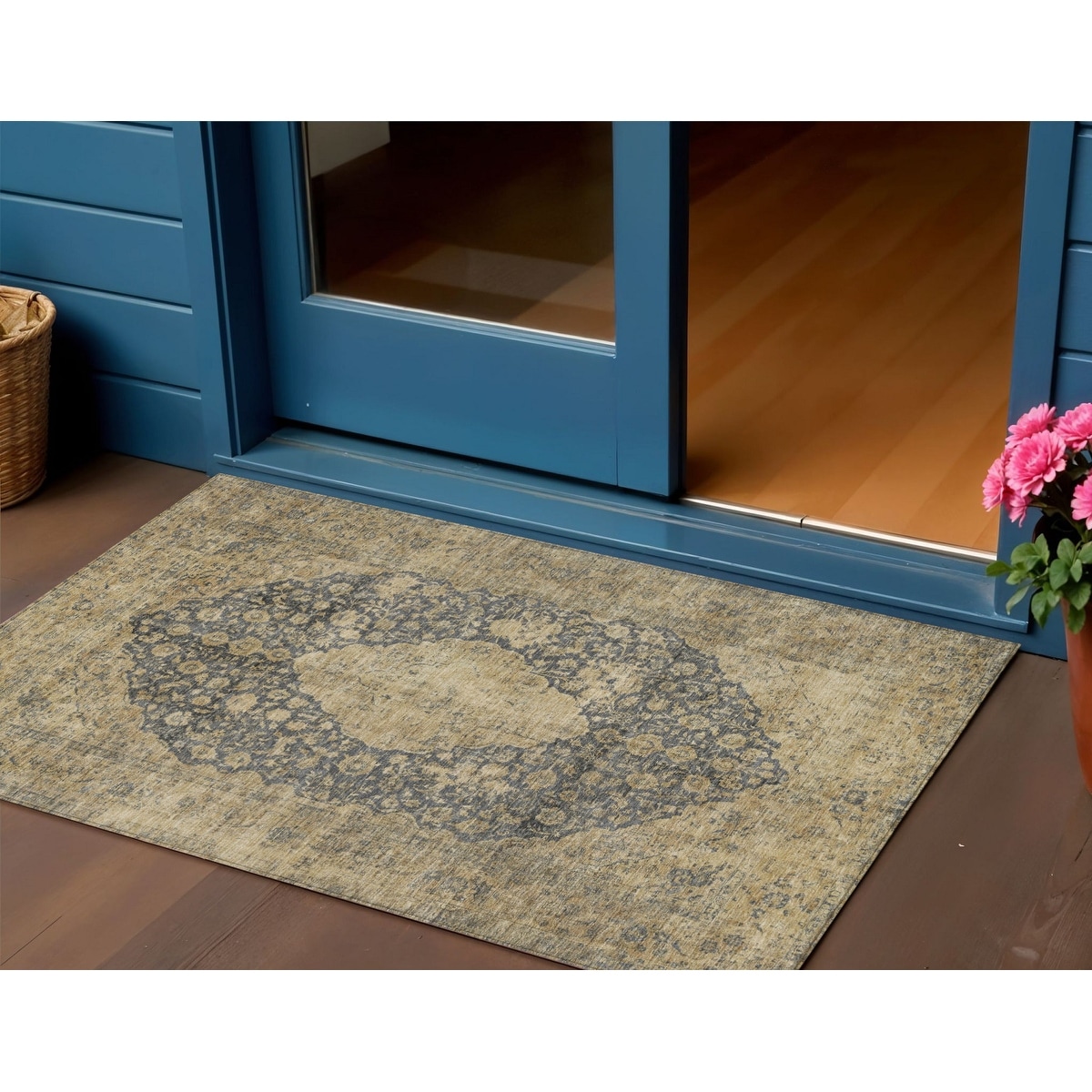 3' X 5' Charcoal And Beige Medallion Washable Indoor Outdoor Area Rug - 3' x 6'