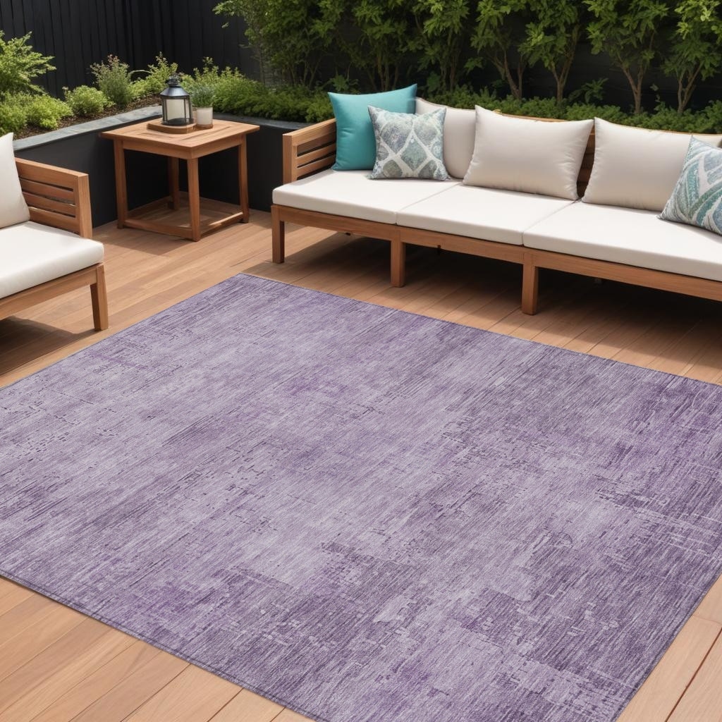 8' X 10' Lavender And Plum Abstract Washable Indoor Outdoor Area Rug - 9' x 12'