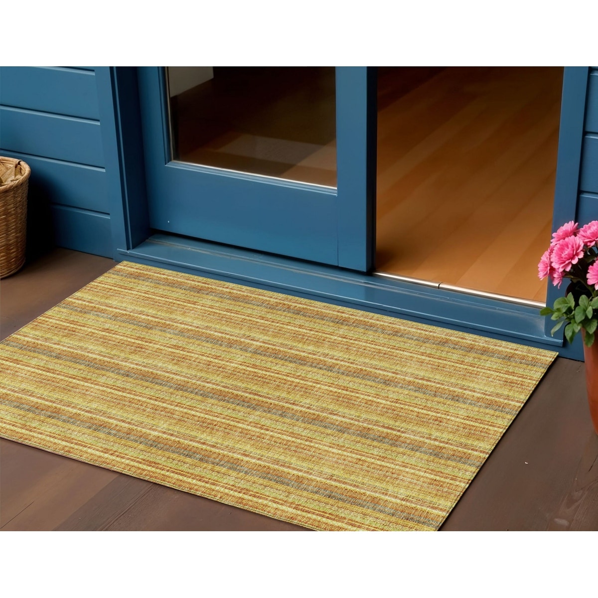 3' X 5' Gold And Copper Striped Washable Indoor Outdoor Area Rug - 3' x 6'