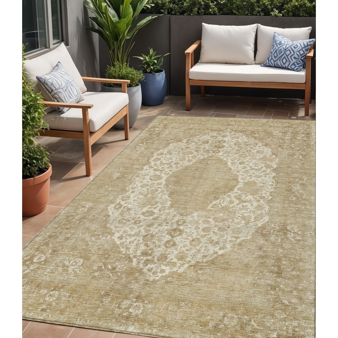 5' X 8' Ivory And Beige Medallion Washable Indoor Outdoor Area Rug - 5' x 8'