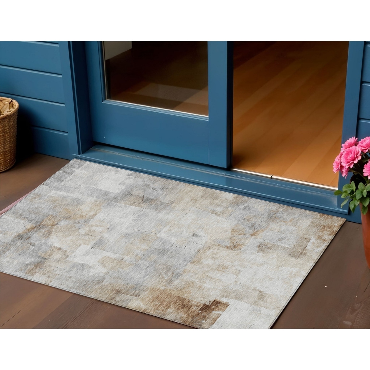 3' X 5' Beige Gray And Khaki Abstract Washable Indoor Outdoor Area Rug - 3' x 6'