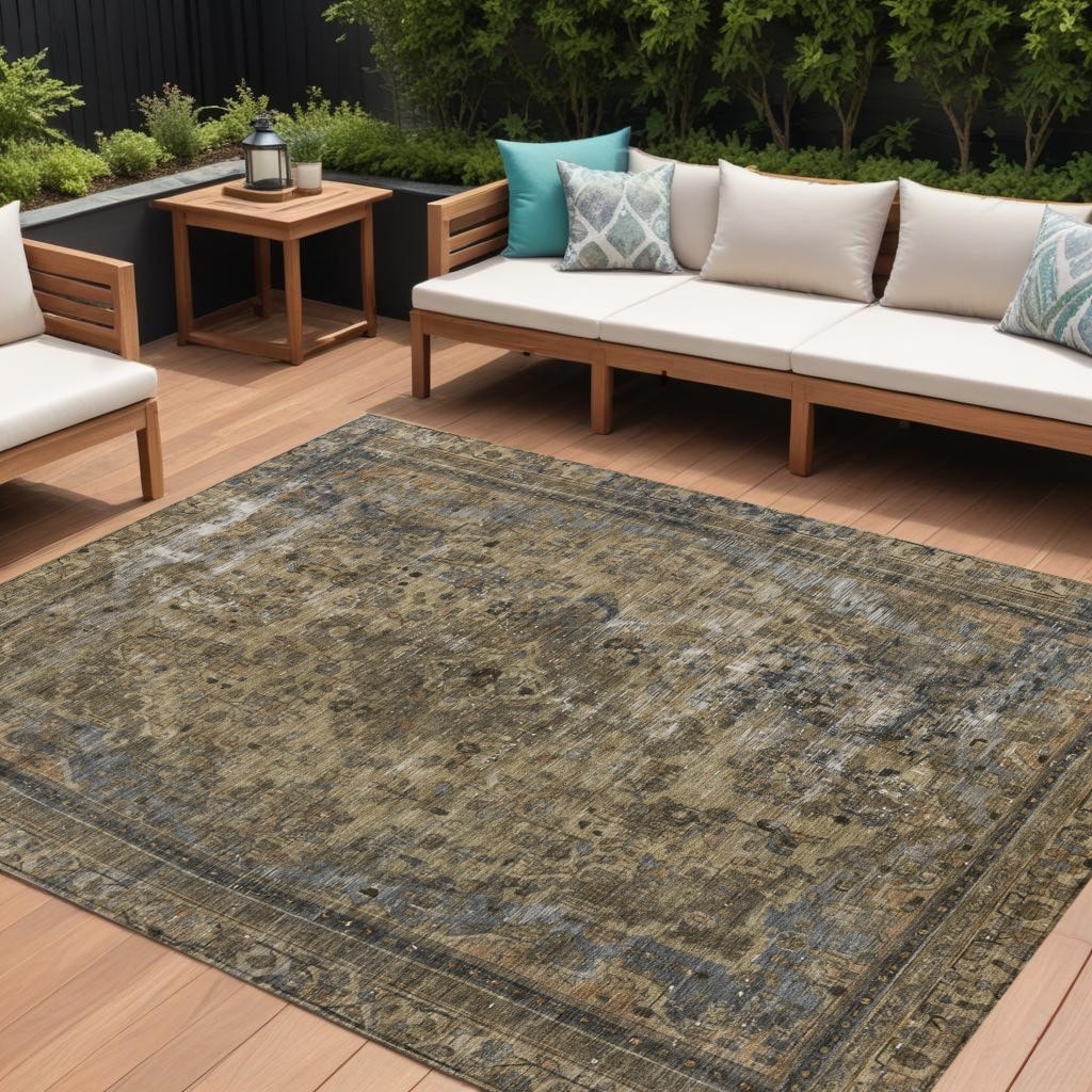 8' X 10' Brown And Beige Medallion Washable Indoor Outdoor Area Rug - 9' x 12'