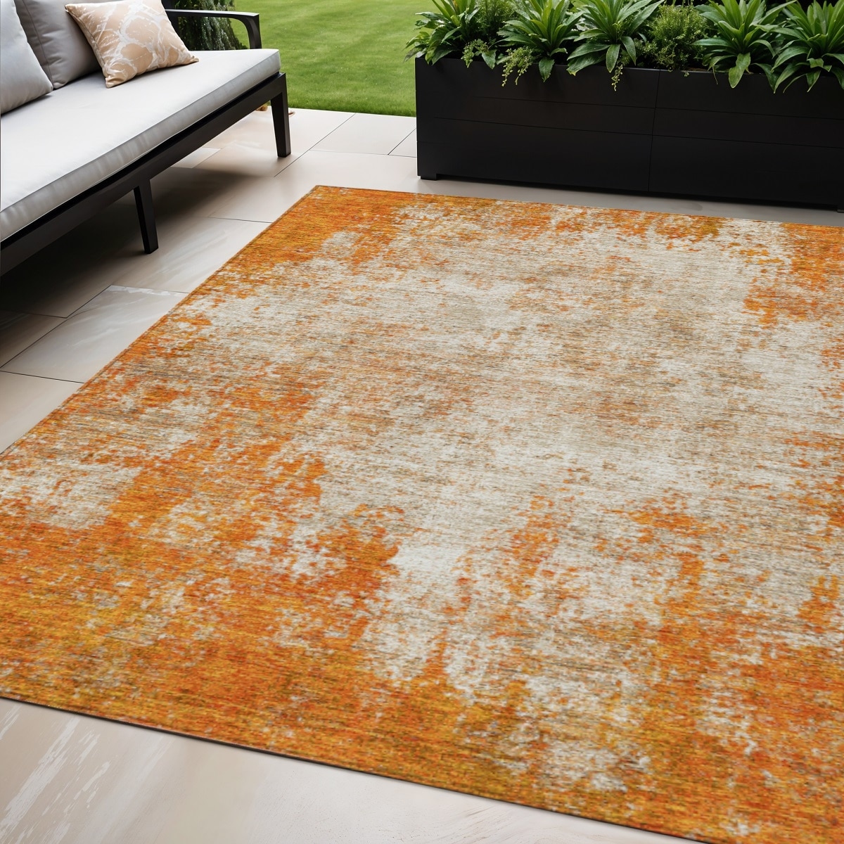 5' X 8' Orange And Ivory Abstract Washable Indoor Outdoor Area Rug - 5' x 8'