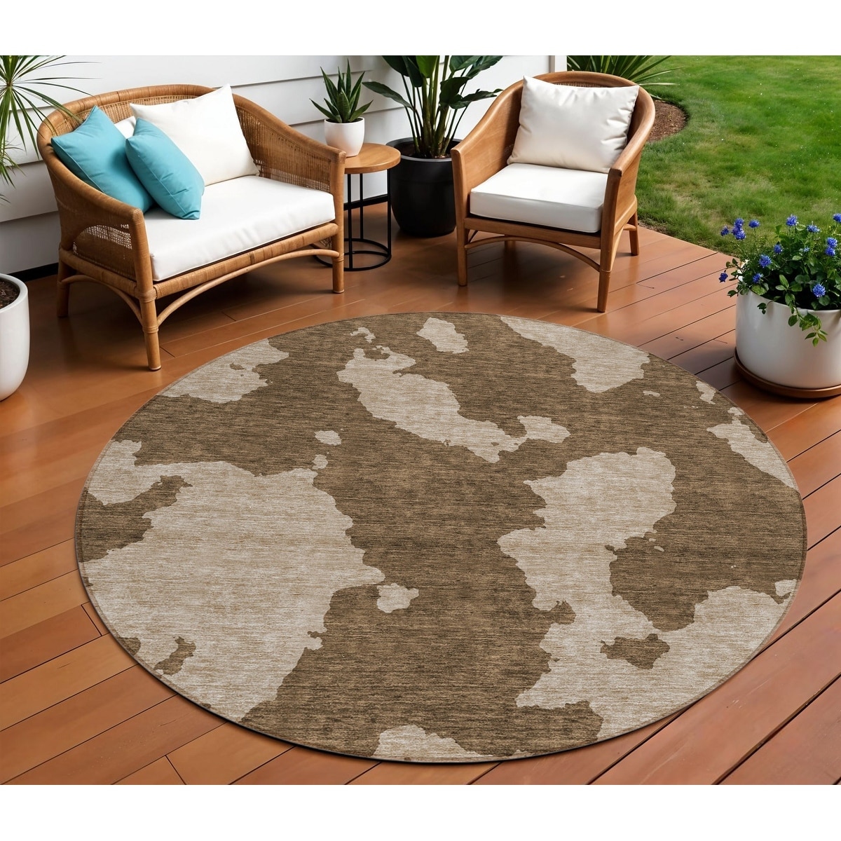 8' Brown And Beige Round Abstract Washable Indoor Outdoor Area Rug - 6' x 9'