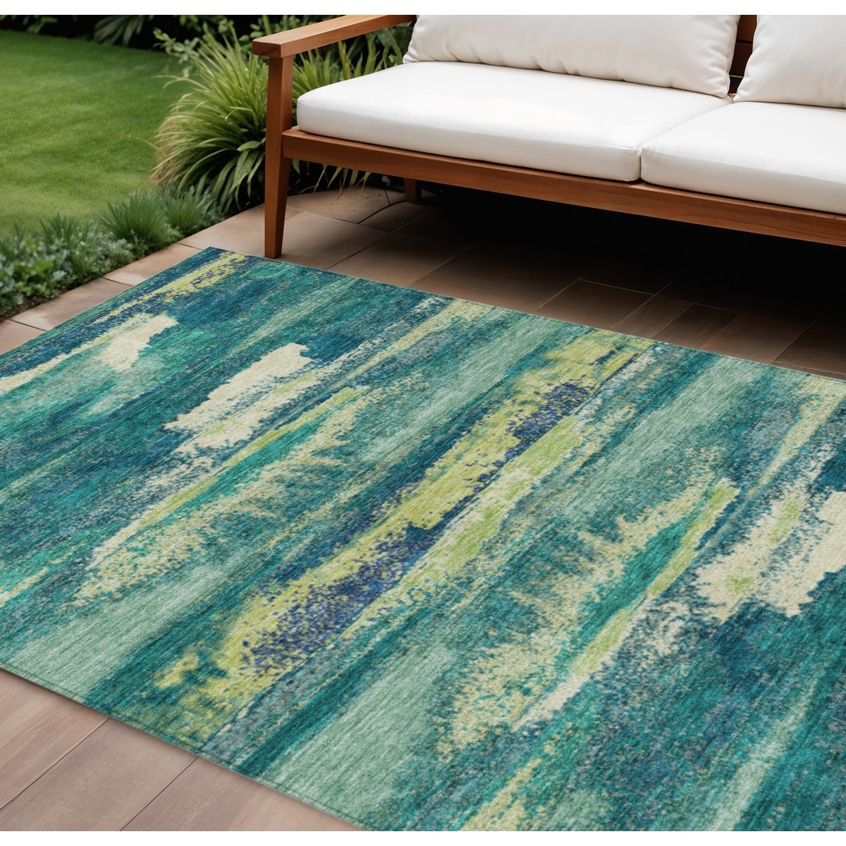Machine Washable Indoor/Outdoor Abstract Modern Chantille Rug