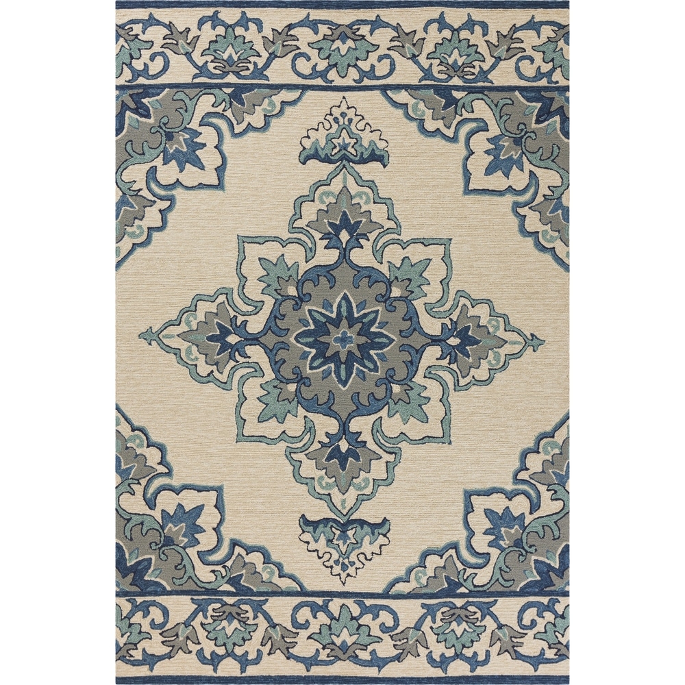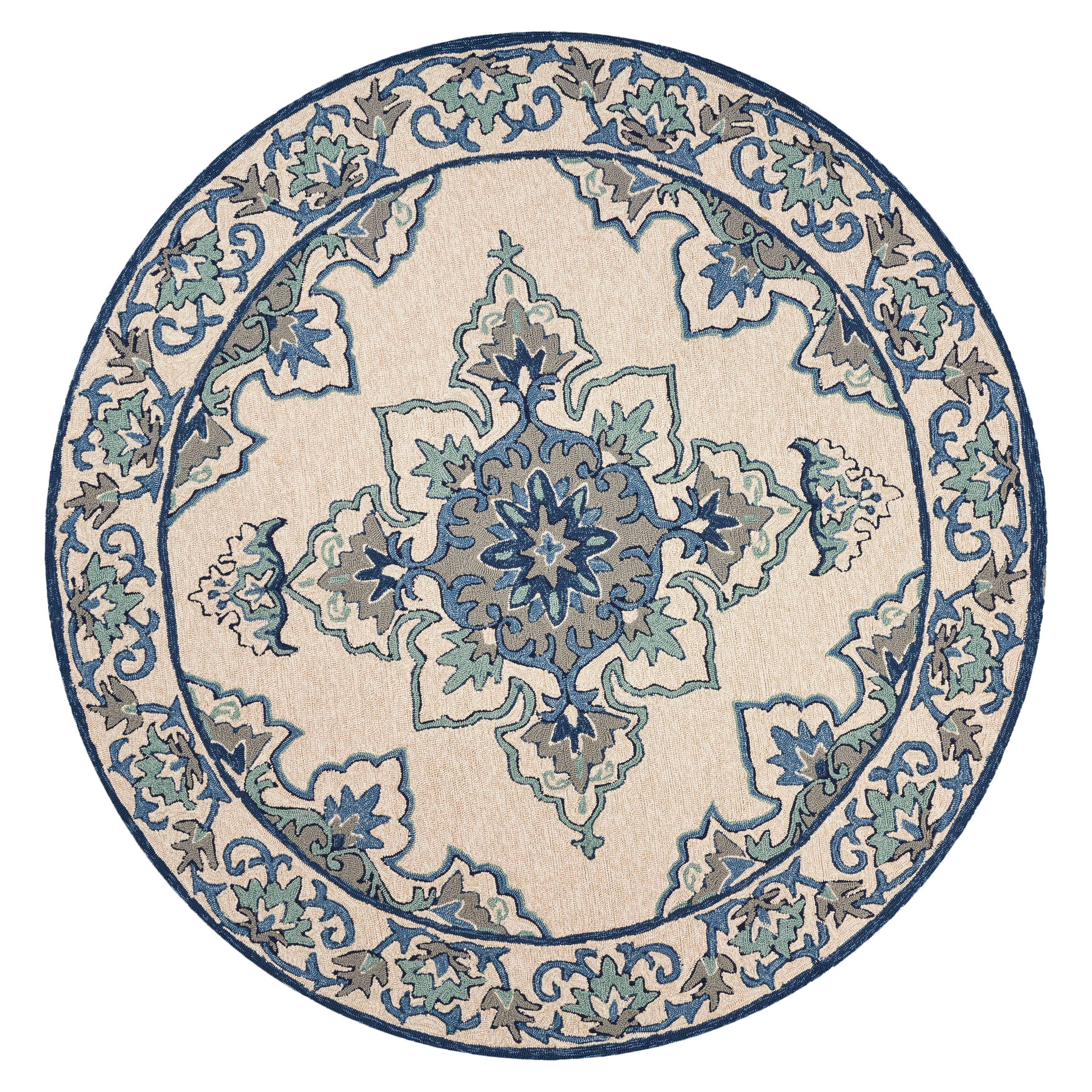 Domani Trails Ivory/Blue Medallion Hand-Hooked Outdoor Rug