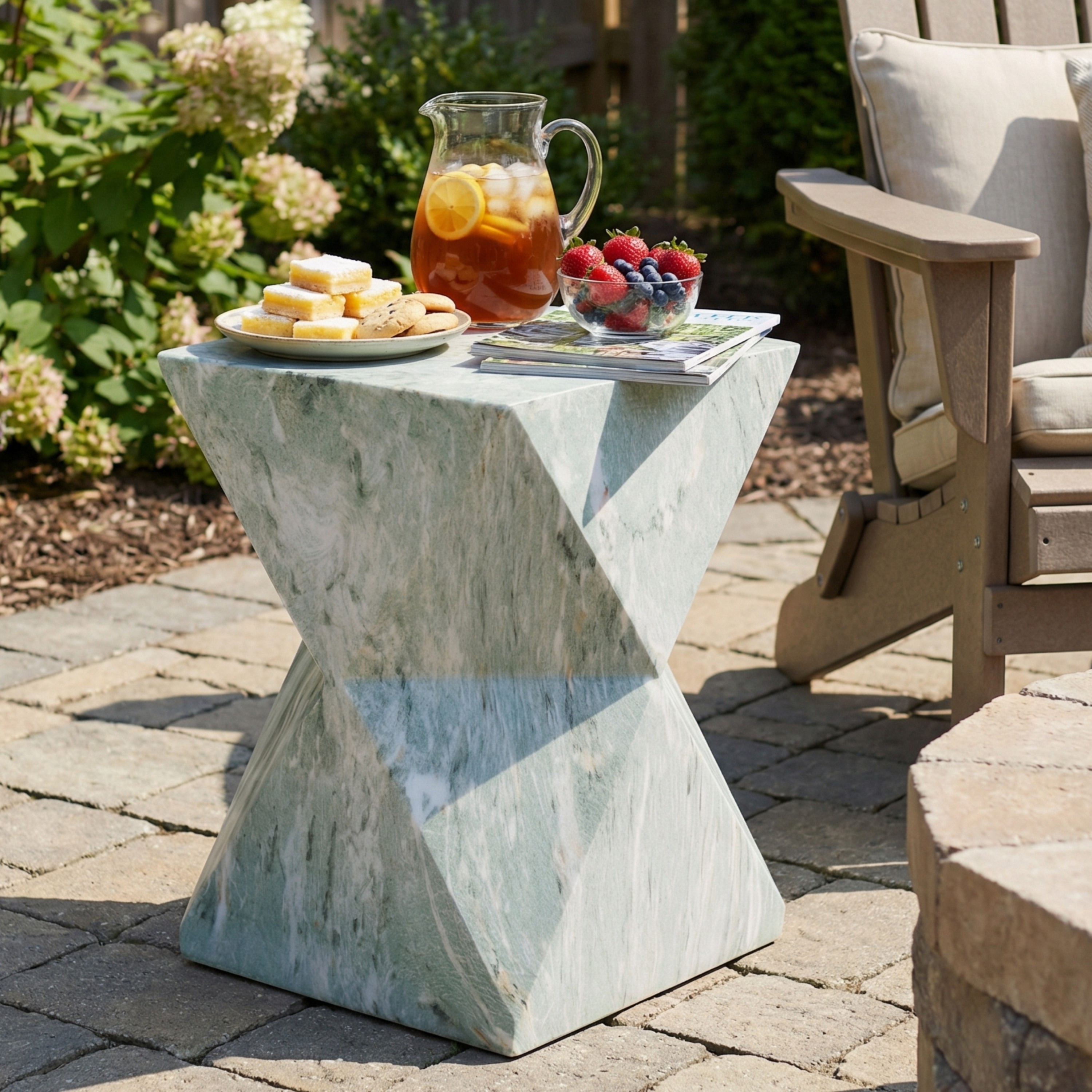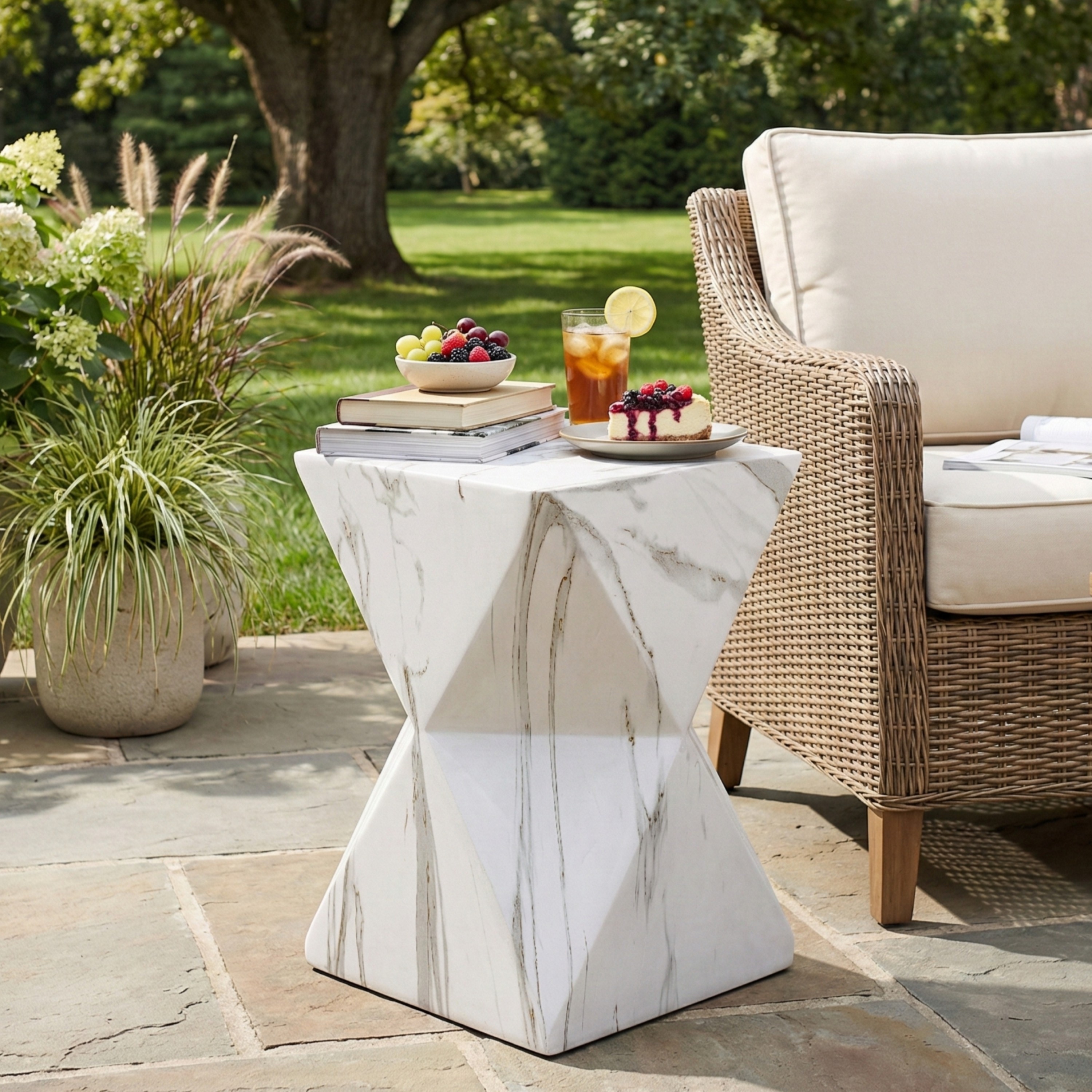 Christopher Knight Home - Lightweight Concrete Hourglass Accent Side Table with Faux Marble Finish for Indoor & Outdoor