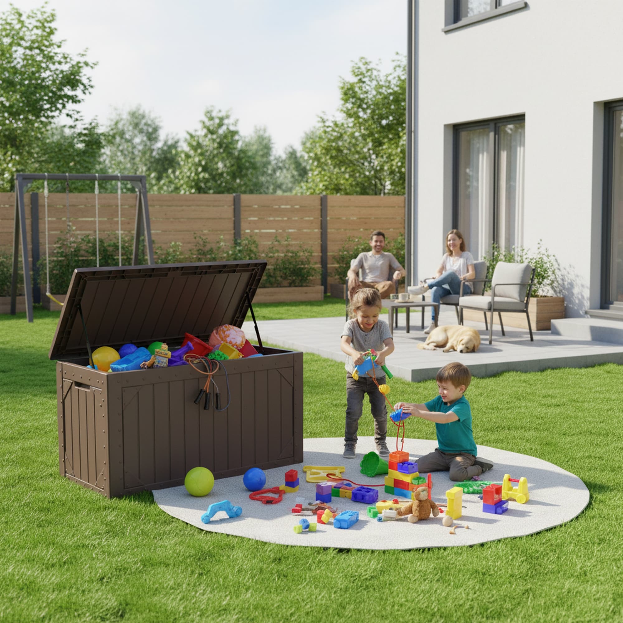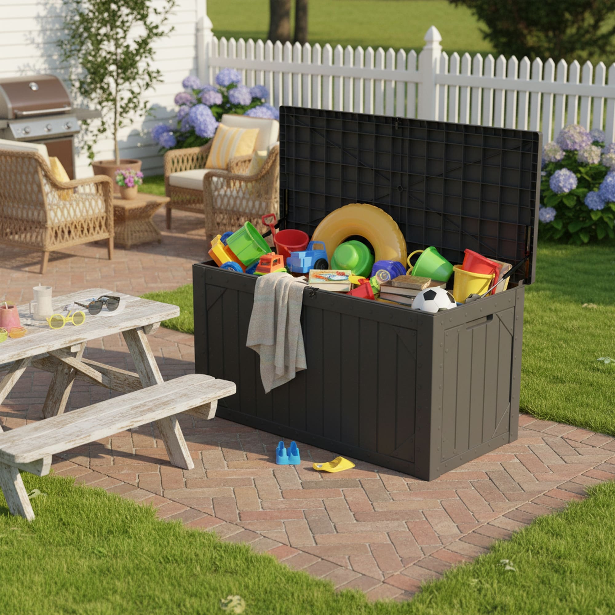 260 Gallon Outdoor Storage Box with Lockable Lid, Extra Large Waterproof Patio Resin Deck Box with, Home Storage Box