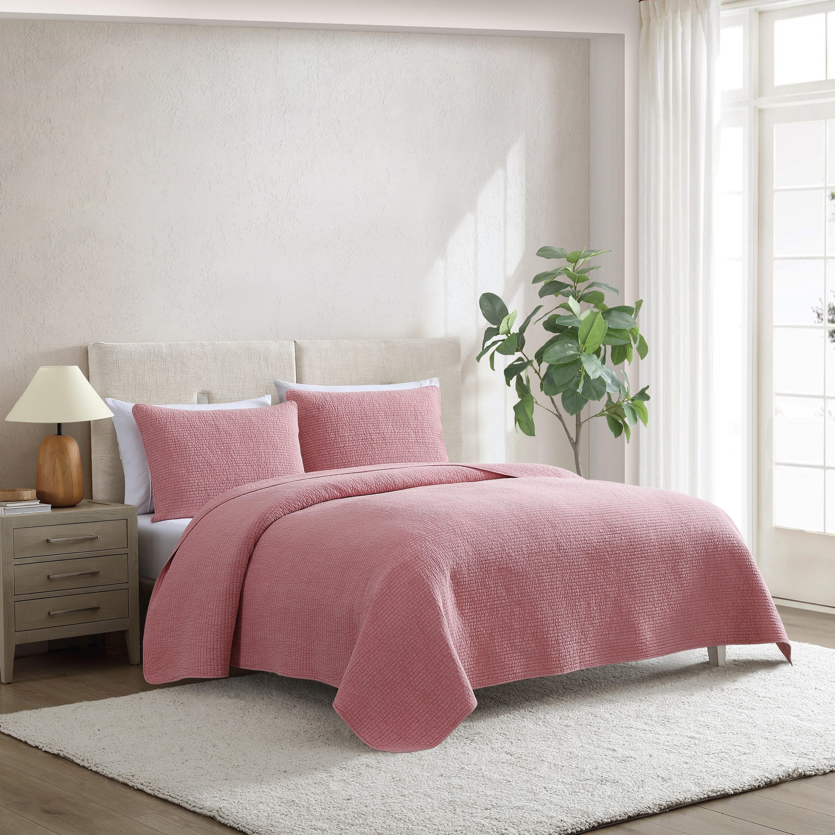 Nautica Seashore Stitch Solid Cotton Reversible Quilt Set