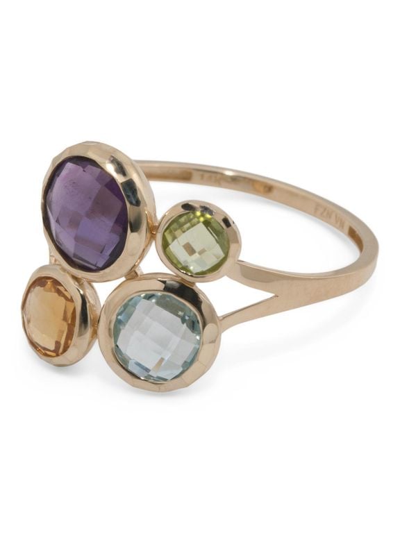 14Kt Multi Gemstone Bezel Ring, Amethyst - White - Tj Maxx Rings