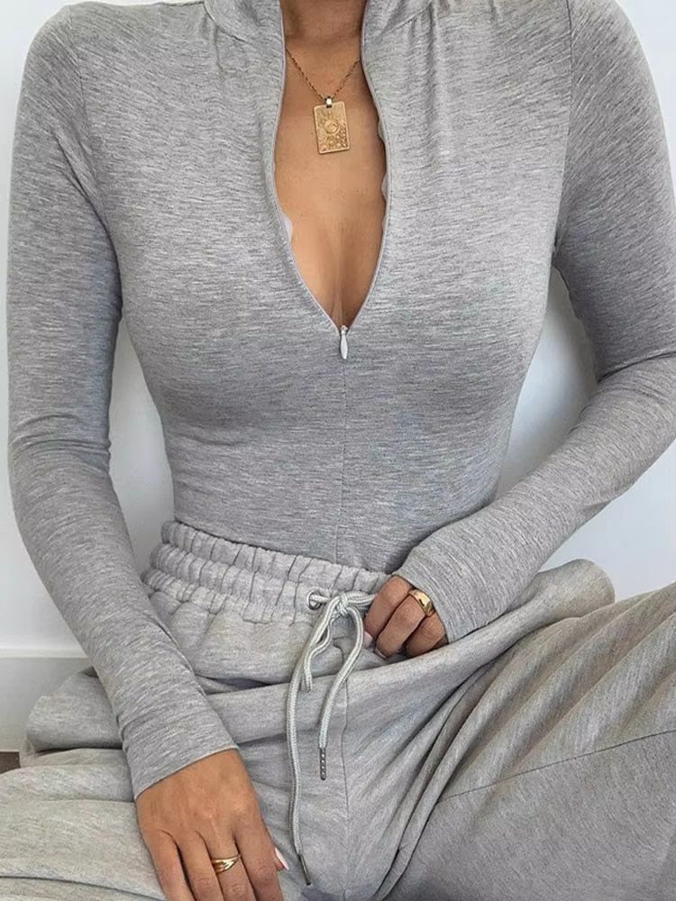 Sculpt Zip Women's Mock Neck Bodycon Bodysuit Long Sleeve Slim Fit Top white l