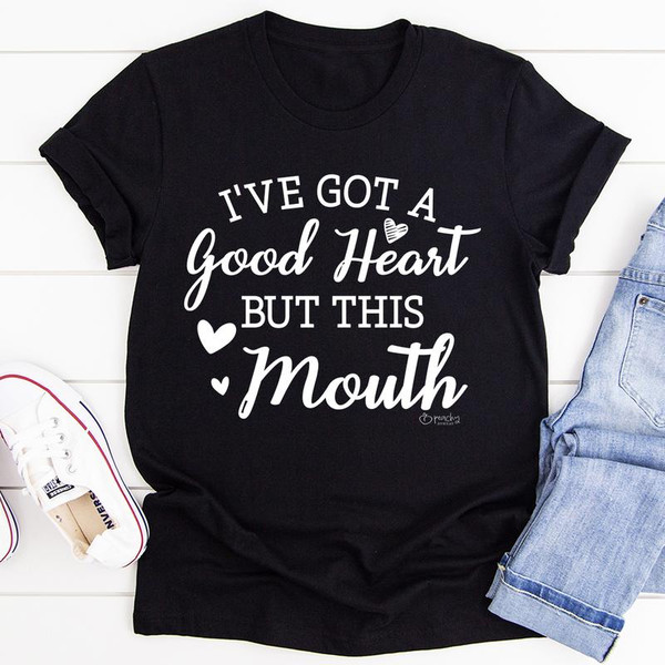 I've Got A Good Heart But This Mouth Tee Black Heather XL
