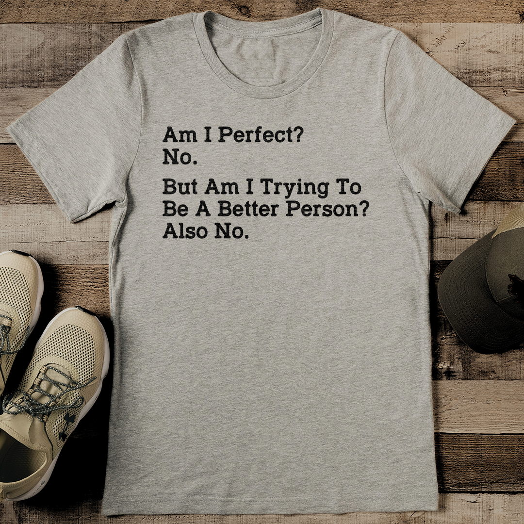 Am I Perfect No But Am I Trying To Be A Better Person Also No Tee L Black