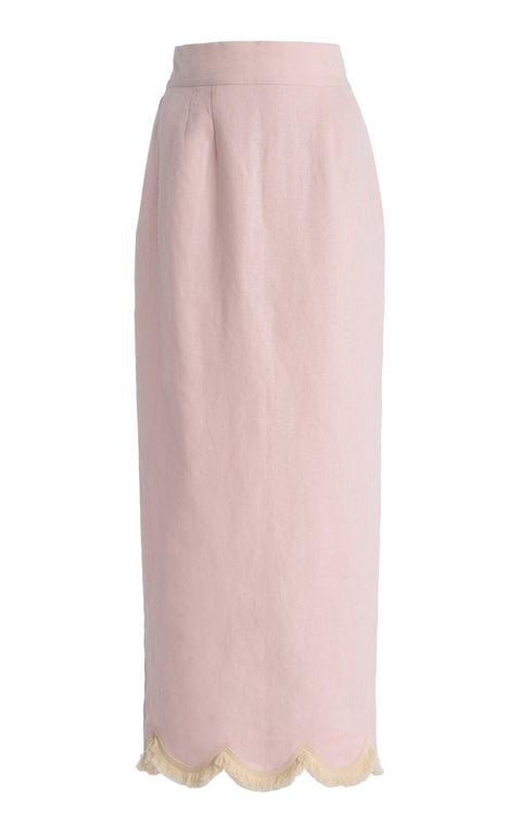 Exclusive Essie Fringed Linen Maxi Column Skirt - Pink - Posse Skirts
