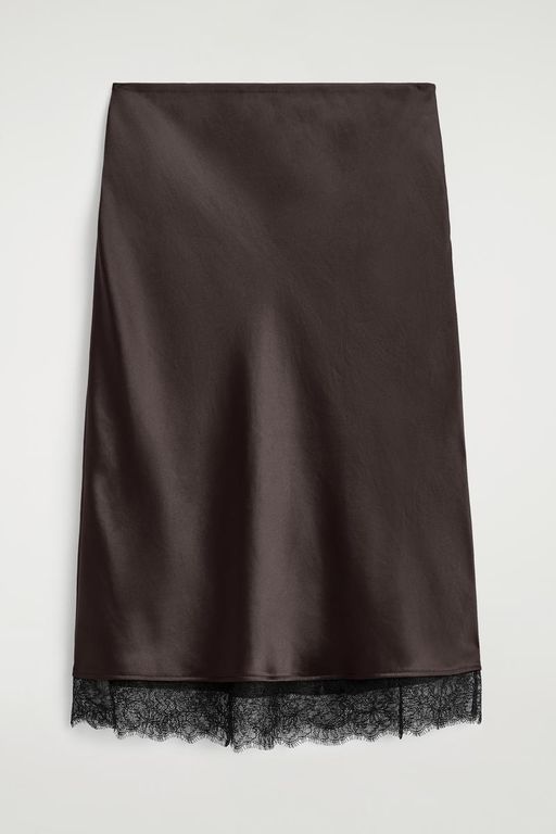 Lace-Trimmed Satin Midi Skirt - Brown - COS Skirts