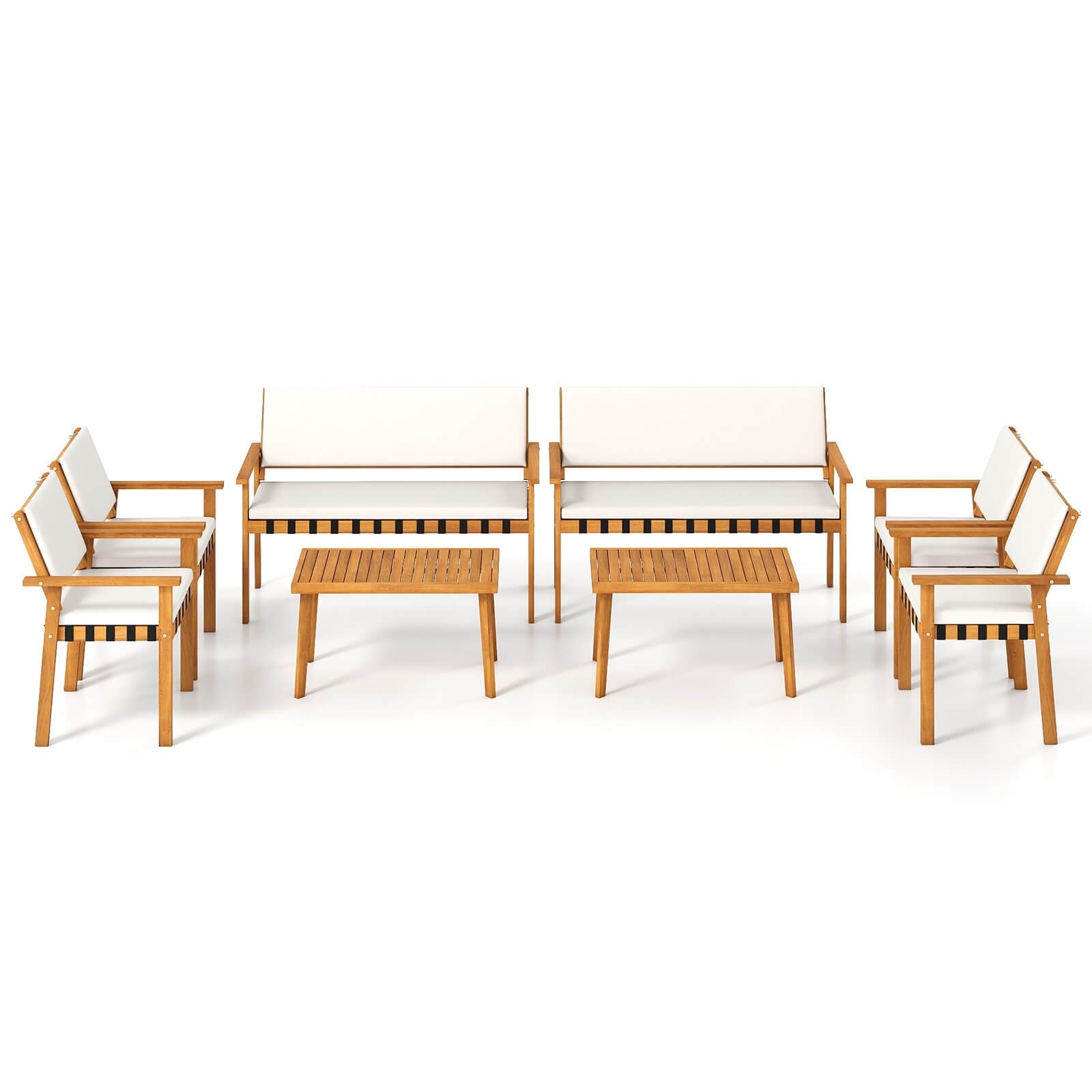 4/8PCS Outdoor Acacia Wood Cushioned Conversation Set w/ Coffee Table