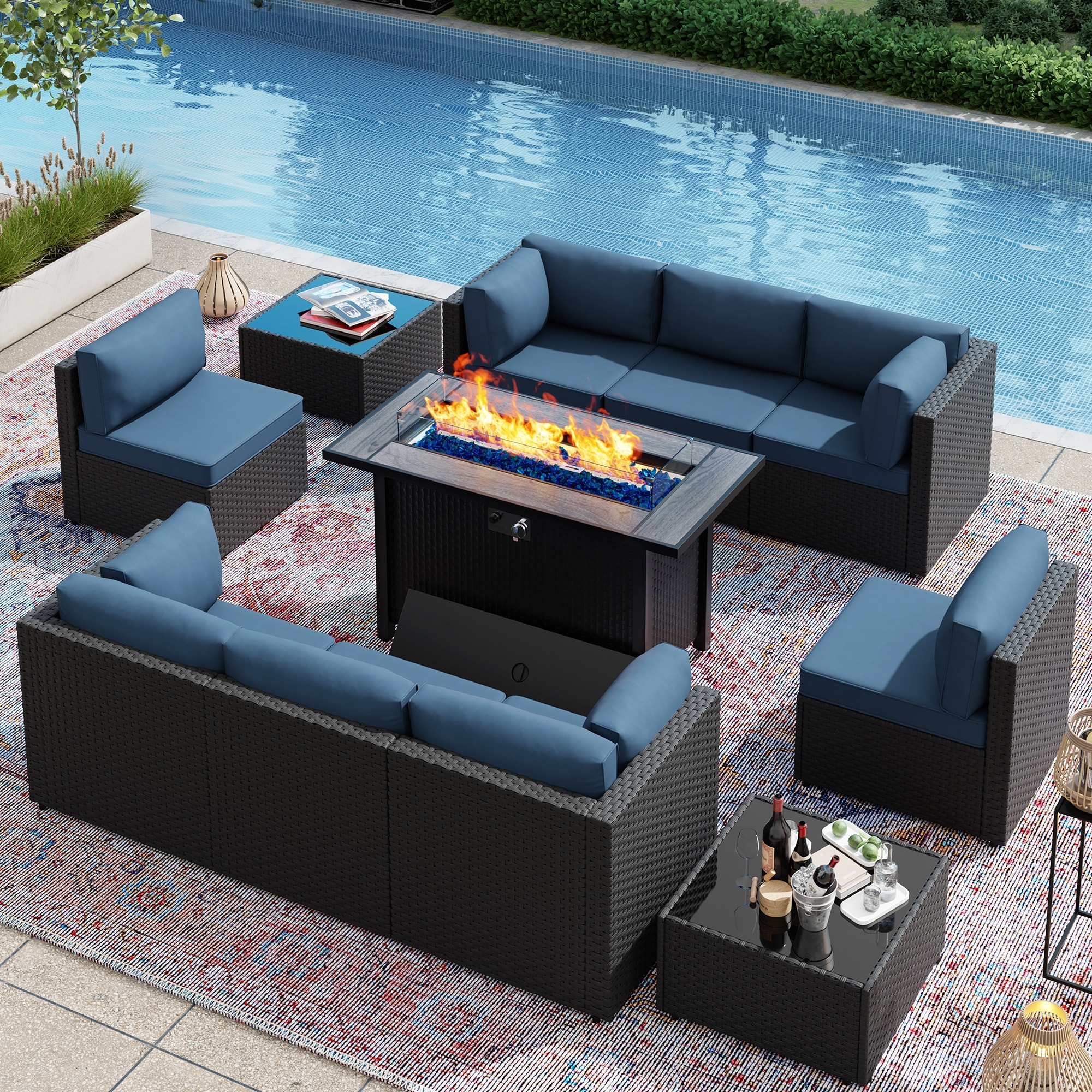 11 Piece Sectional Seating Group with Fire Pit and Cushion